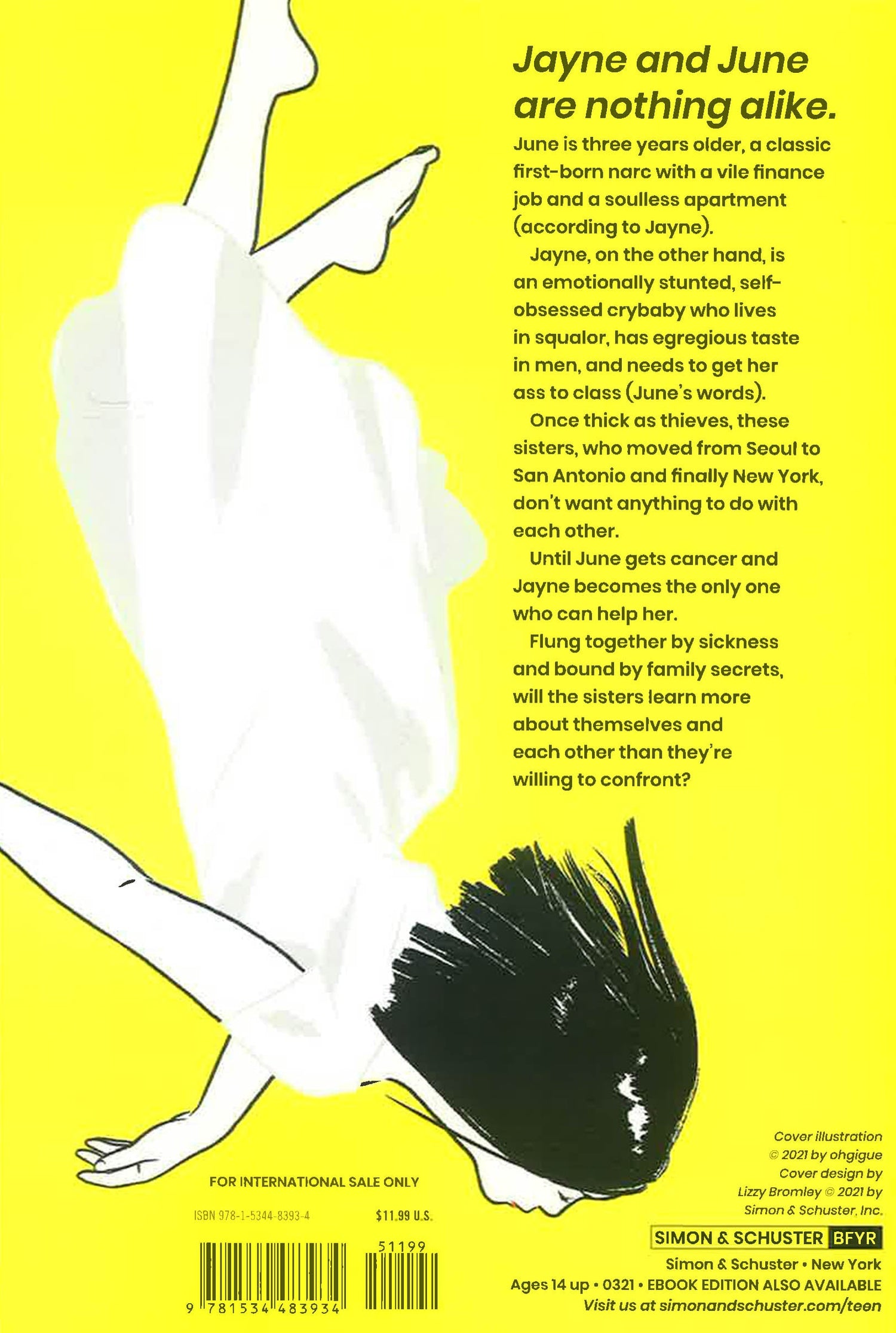 Jayne and June Baek are nothing alike. June’s three years older, a classic first-born, know-it-all narc with a problematic finance job and an equally soulless apartment (according to Jayne). Jayne is an emotionally stunted, self-obsessed basket case who lives in squalor, has egregious taste in men, and needs to get to class and stop wasting Mom and Dad’s money (if you ask June). Once thick as thieves, these sisters who moved from Seoul to San Antonio to New York together now don’t want anything to do with each other.