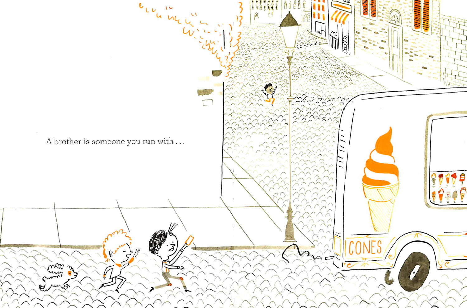 The beauty of the brotherly bond is on display in this touching tribute to a special sibling relationship. Whimsical illustrations capture the highlights of brotherhood: building sandcastles, flying a kite, making mischief, and cherishing childhood moments together. Bright pops of Pantone orange bestow each illustrated spread with charm, and a cloth spine adds a delightful specialness. At once a sweet picture book for young children and a treasured gift for parents, this heartfelt testament to the inimitable brotherly bond goes straight to the heart.