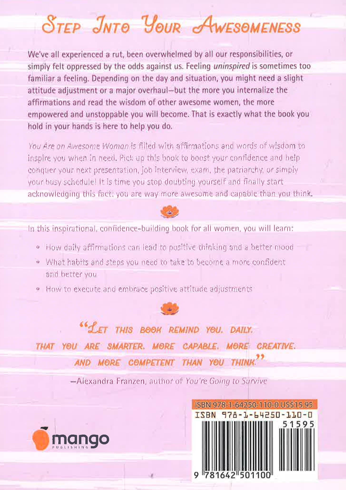 Readers of other Becca Anderson favorites such as Prayers for Hard Times, Badass Women Give the Best Advice, The Book of Awesome Women, and Badass Affirmations will love You Are An Awesome Woman.