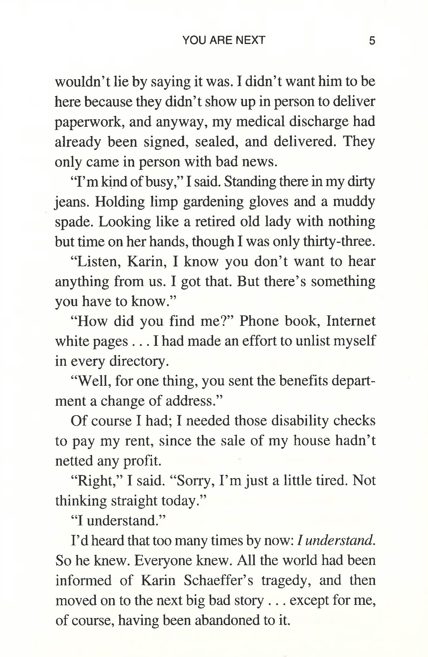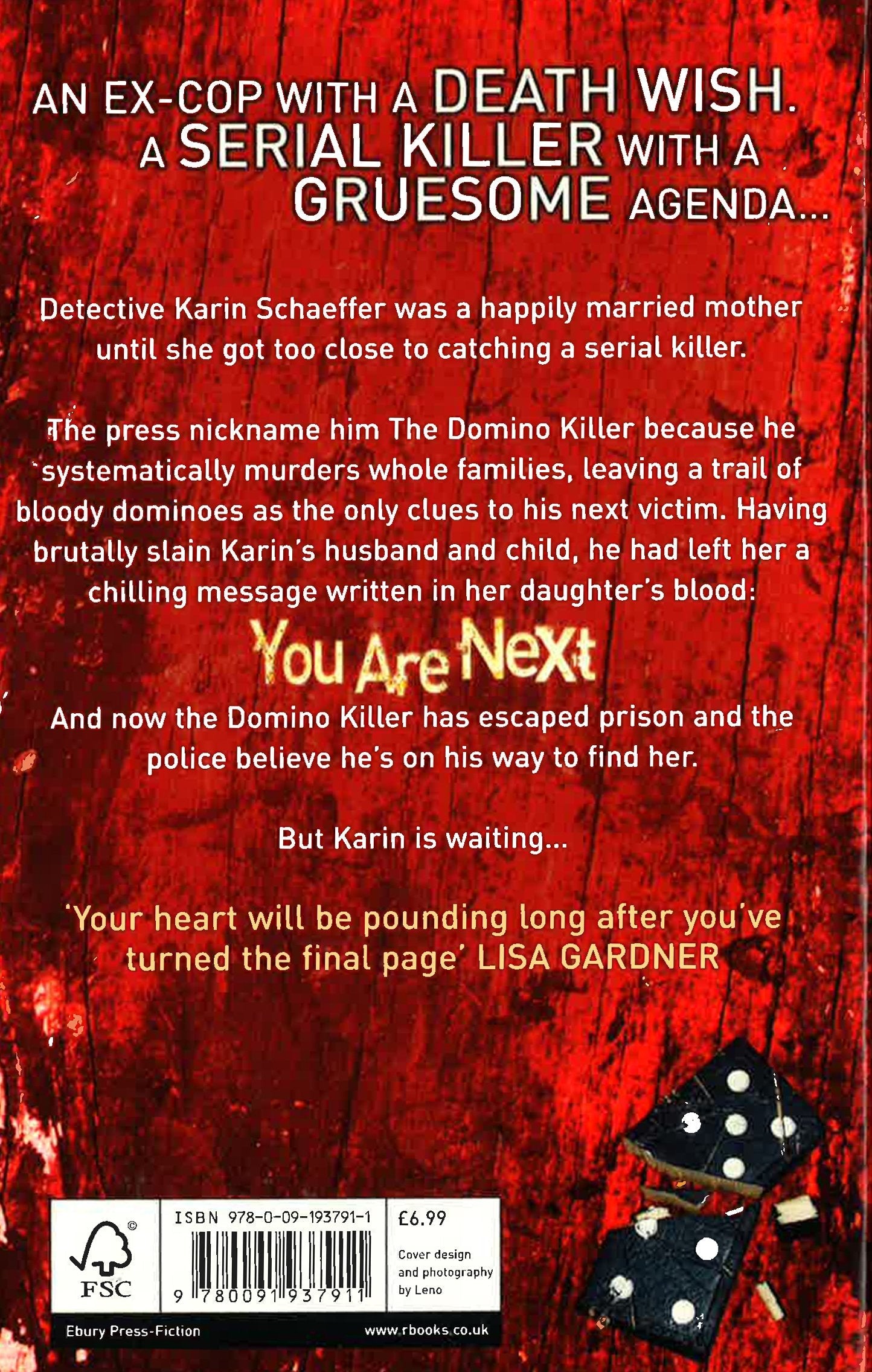 HE TOOK EVERYTHING...THEN CAME BACK FOR MORE. Former Detective Karin Schaeffer has nothing left to live for after serial killer Martin Price destroys all she holds dear. Known as "The Domino Killer," Price doesn't stop until an entire family is destroyed. When he leaves a message, scrawled in blood, on her bathroom mirror, she knows what's coming--You are next. But Karin Schaeffer refuses to run and hide.