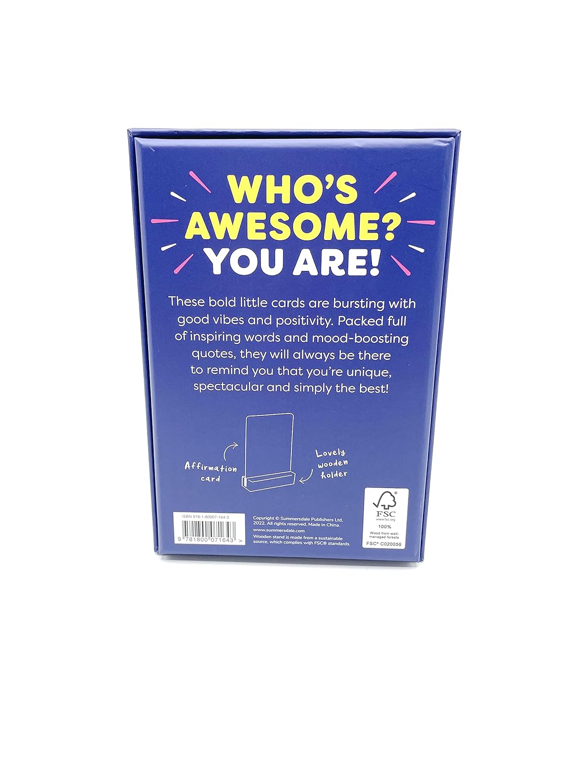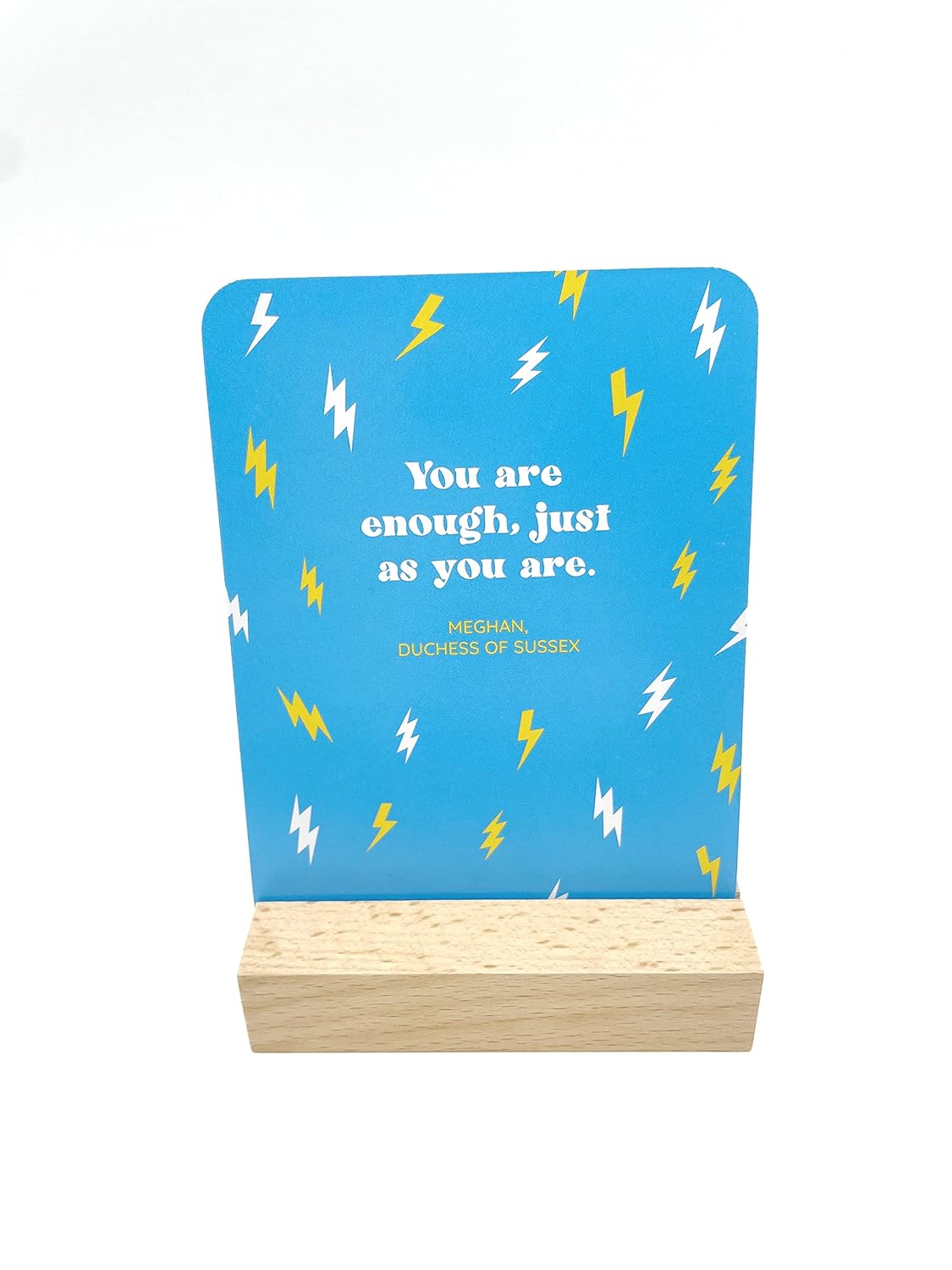 The cards come with a beautiful wooden stand so that you can display them anywhere: as well as adding a pop of colour to your room, your home or your desk, they will help to brighten your outlook and remind you that you're a pretty incredible human being every day!