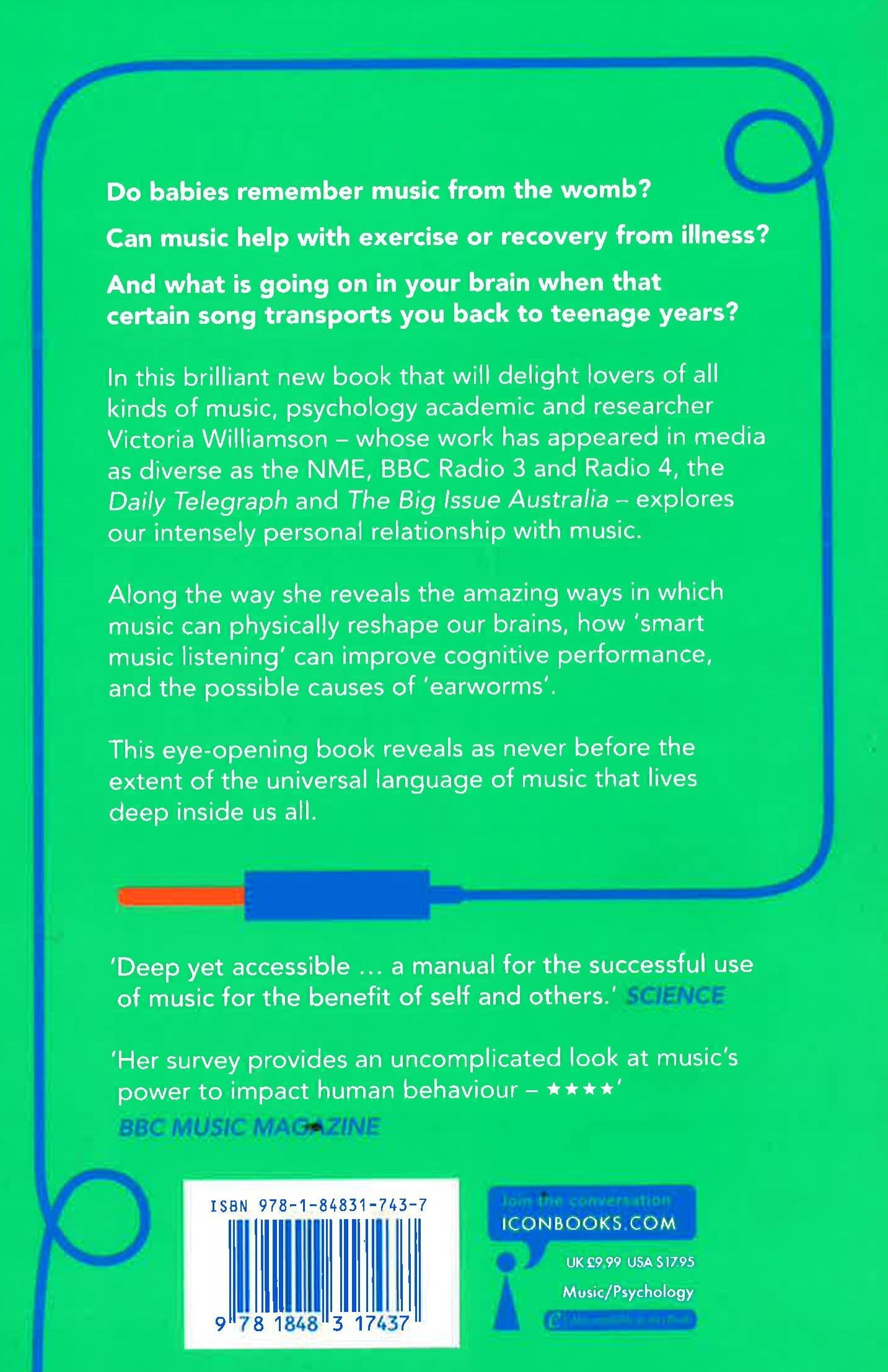 In a brilliant new work that will delight music lovers of every persuasion, music psychologist Victoria Williamson examines our relationship with music across the whole of a lifetime. Along the way she reveals the amazing ways in which music can physically reshape our brains, explores how `smart music listening' can improve cognitive performance, and considers the perennial puzzle of what causes `earworms'. Requiring no specialist musical or scientific knowledge, this upbeat, eye-opening book reveals as never before the extent of the universal language of music that lives deep inside us all.