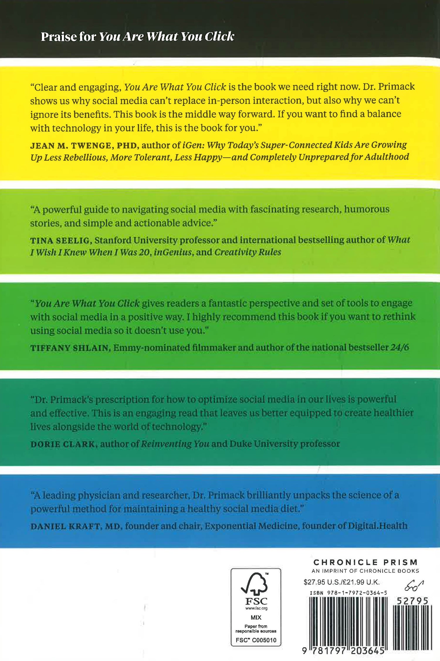 Arming readers with new, evidence-based research, You Are What You Click teaches us why many of our current social media habits may be making us feel more alone and depressed. He then empowers us to take back control by being selective about the way we spend our time online.