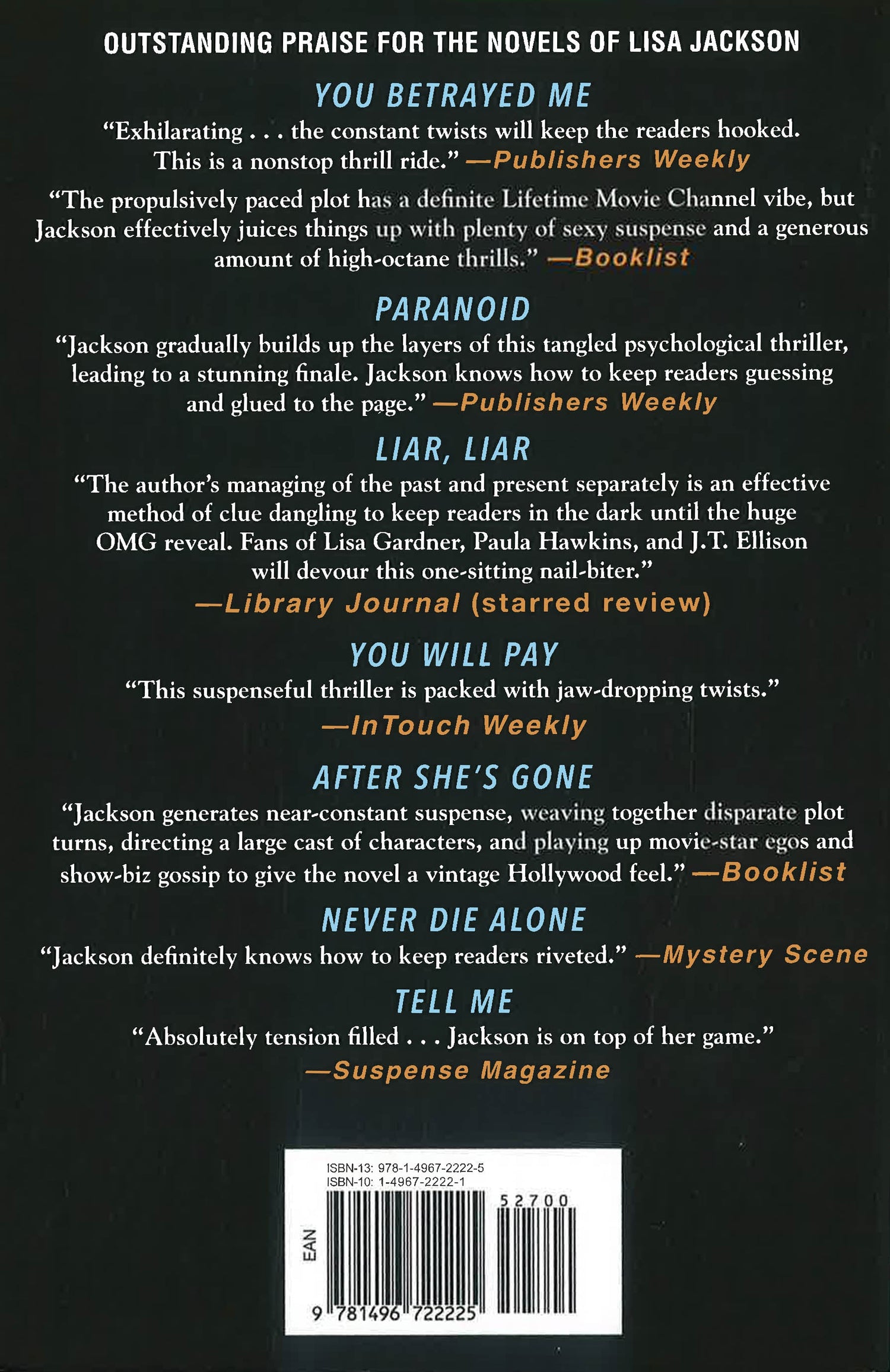 A twisting, unpredictable new novel of suspense by #1 New York Times bestselling author Lisa Jackson, perfect for fans of the page-turning novels of Harlan Coben, Melinda Leigh, and Gregg Olsen.