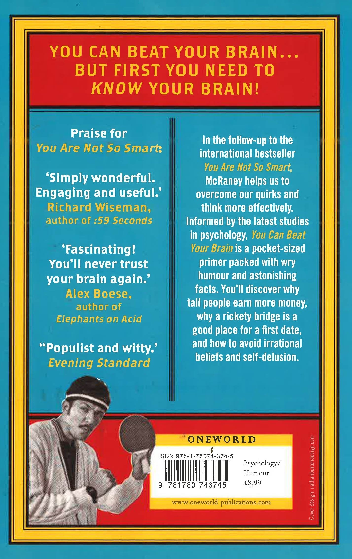 In the follow-up to the international bestseller You Are Not So Smart, McRaney helps us to overcome our quirks and think more effectively. Informed by the latest studies in psychology, You Can Beat Your Brain is a pocket-sized primer packed with wry humour and astonishing facts. You'll discover why tall people earn more money, why a rickety bridge is a good place for a first date, and how to avoid irrational beliefs and self-delusion.