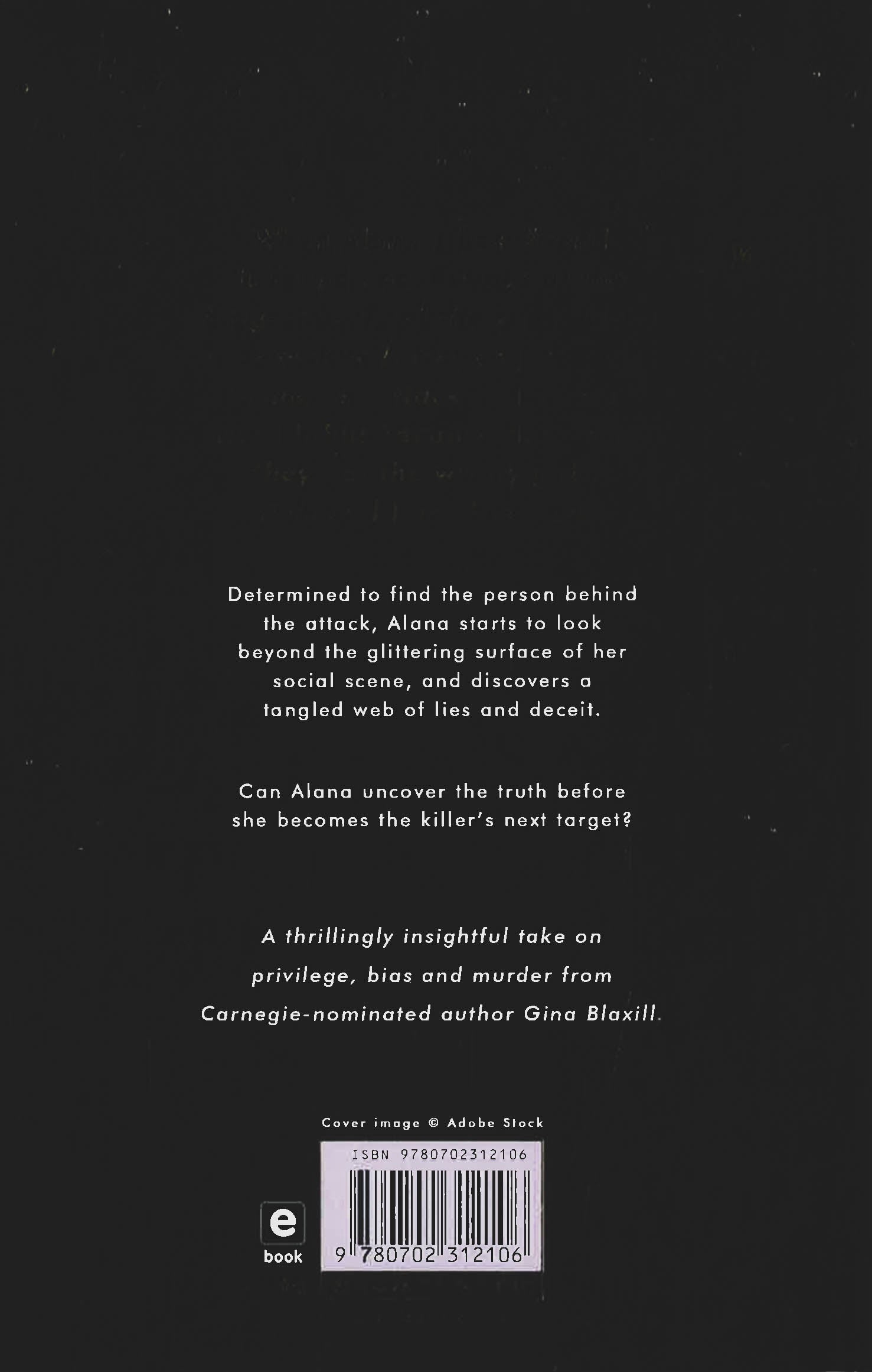 When Alana's best friend is found drowned in a pool, the forensic reports discover date-rape drug GHB in her blood. GHB from a drink Alana knows was meant for her. Despite the swirling rumours, the suspected group of boys seem untouchable. To investigate, Alana allows herself to be pulled into their glittering orbit. But among shifting alliances, changing alibis and buried secrets, can she pinpoint which of the boys is responsible before she becomes their next target?