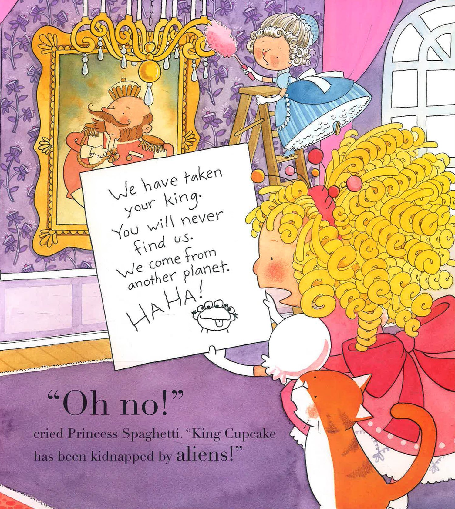 It's Princess Spaghetti's birthday, but her father King Cupcake has been kidnapped by aliens! Without a moment to spare, Princess cranks up the royal rocket ship and zooms into space on a rescue mission. In record time, she discovers the offending group of aliens just as they are about to turn her father into a vat of soup. But how can one tiny little princess overtake an entire group of aliens? And what on earth could chocolate have to do with any of it?