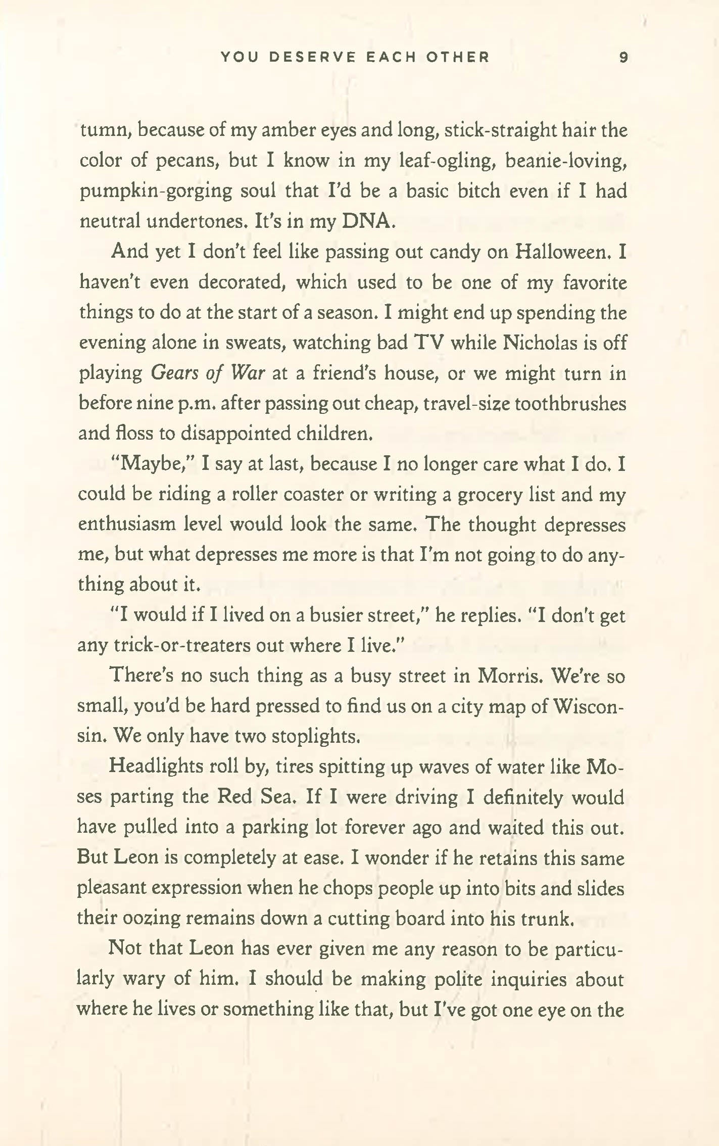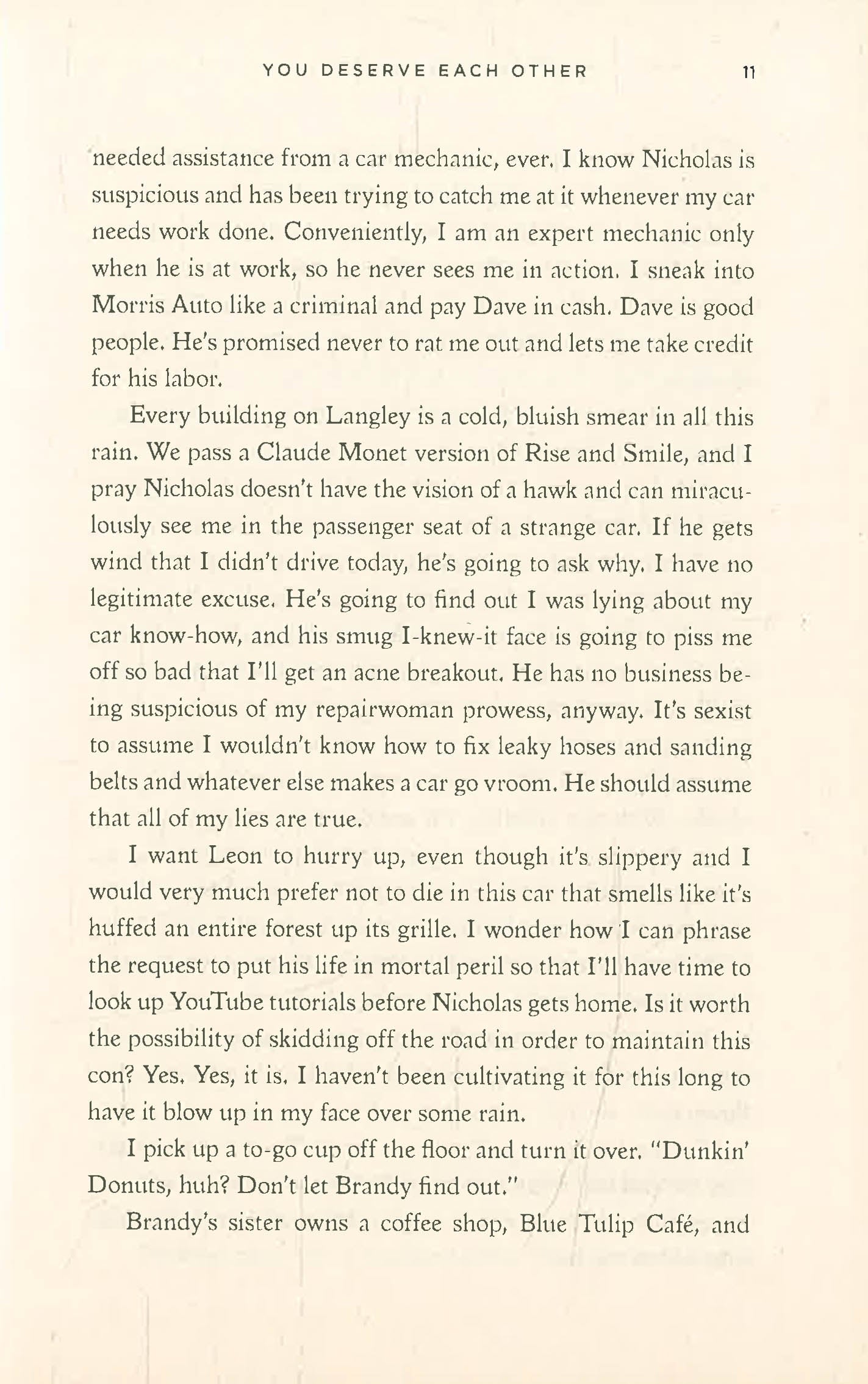 'An honest depiction of how dishonesty in a relationship can be its undoing. You Deserve Each Other is a sharp and witty look at how relationships take work to succeed, and how being true to yourself and each other is at the very core of a romantic connection' Samantha Young