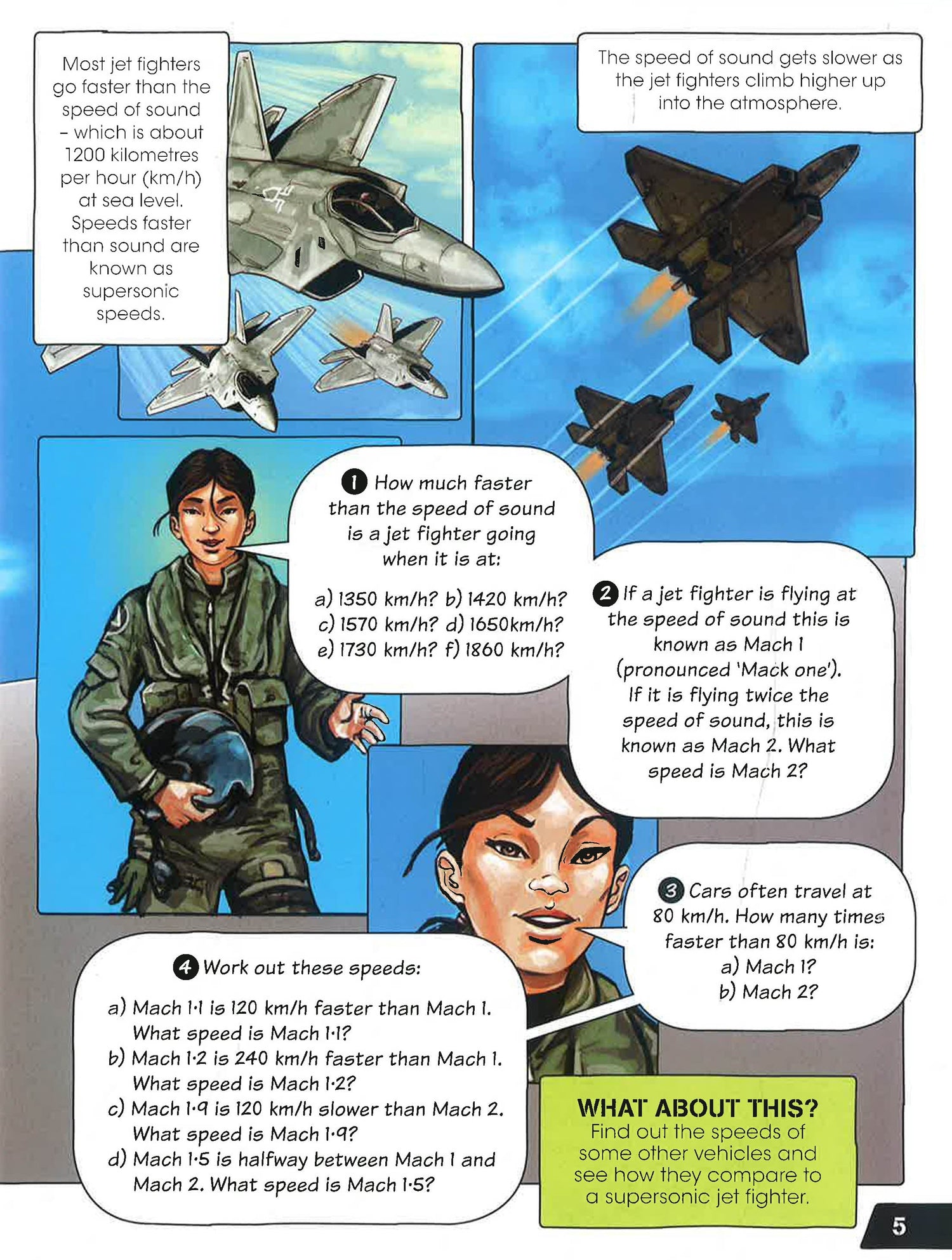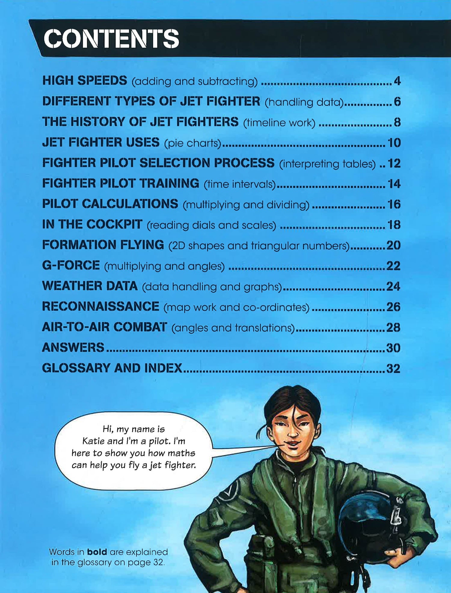 Take to the skies on a mission to be the best fighter pilot! Follow each stage of the mission and complete the math exercises to create your squadron of jet fighter aces! From addition and decimals to line graphs and pie charts, these books have different challenges to be solved with a varying range of difficulty.