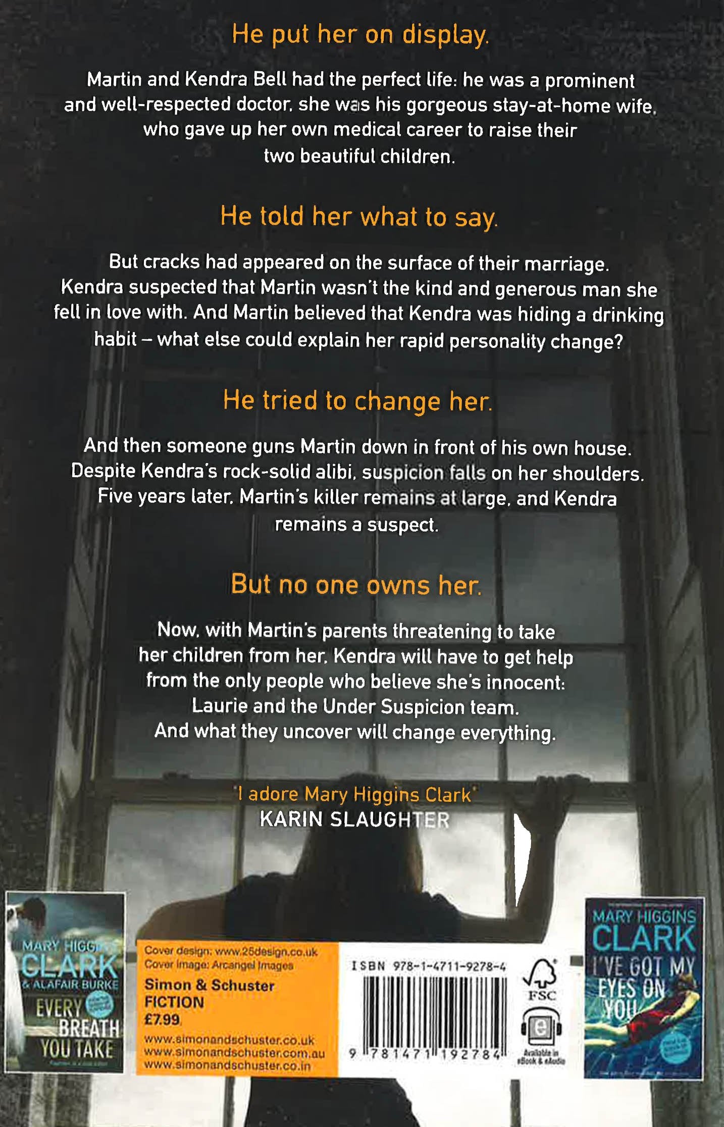 The "Queen of Suspense" Mary Higgins Clark and Alafair Burke are here with their fifth enthralling mystery in the New York Times bestselling Under Suspicion series as television producer Laurie Moran must solve the murder of a celebrity doctor--before a mysterious stalker plots his next move. Television producer Laurie Moran recently became engaged to her investigative television show's former host, Alex Buckley, and since then, the two have been happily planning a summer wedding, preparing for Alex's confirmation to a federal judicial appointment, and searching for the perfect New York City home for their new life together. But then Laurie is approached by Robert and Cynthia Bell, parents of Dr. Martin Bell, a physician who was shot dead as he pulled into the driveway of his Greenwich Village carriage house five years ago. The Bells are sure that Martin's disgraced and erratic wife, Kendra, carried out the murder. Determined to prove Kendra's guilt and win custody over their grandchildren, they plead with Laurie to feature their son's case on Under Suspicion, ensuring her that Kendra is willing to cooperate. As Laurie dives into the case, she learns that Martin wasn't the picture-perfect husband, father, and doctor he appeared to be and was carrying secrets of his own. And what does the web of lies ensnaring the Bell family have to do with a dangerous stranger, who gazes at Laurie from afar and thinks, She is actually quite a lovely girl, I'm sure she's going to be missed...? You Don't Own Me is the perfect, exhilarating follow up to the bestselling Every Breath You Take. The "Queen of Suspense" Mary Higgins Clark and her dazzling partner-in-crime Alafair Burke have devised another riveting page-turner.