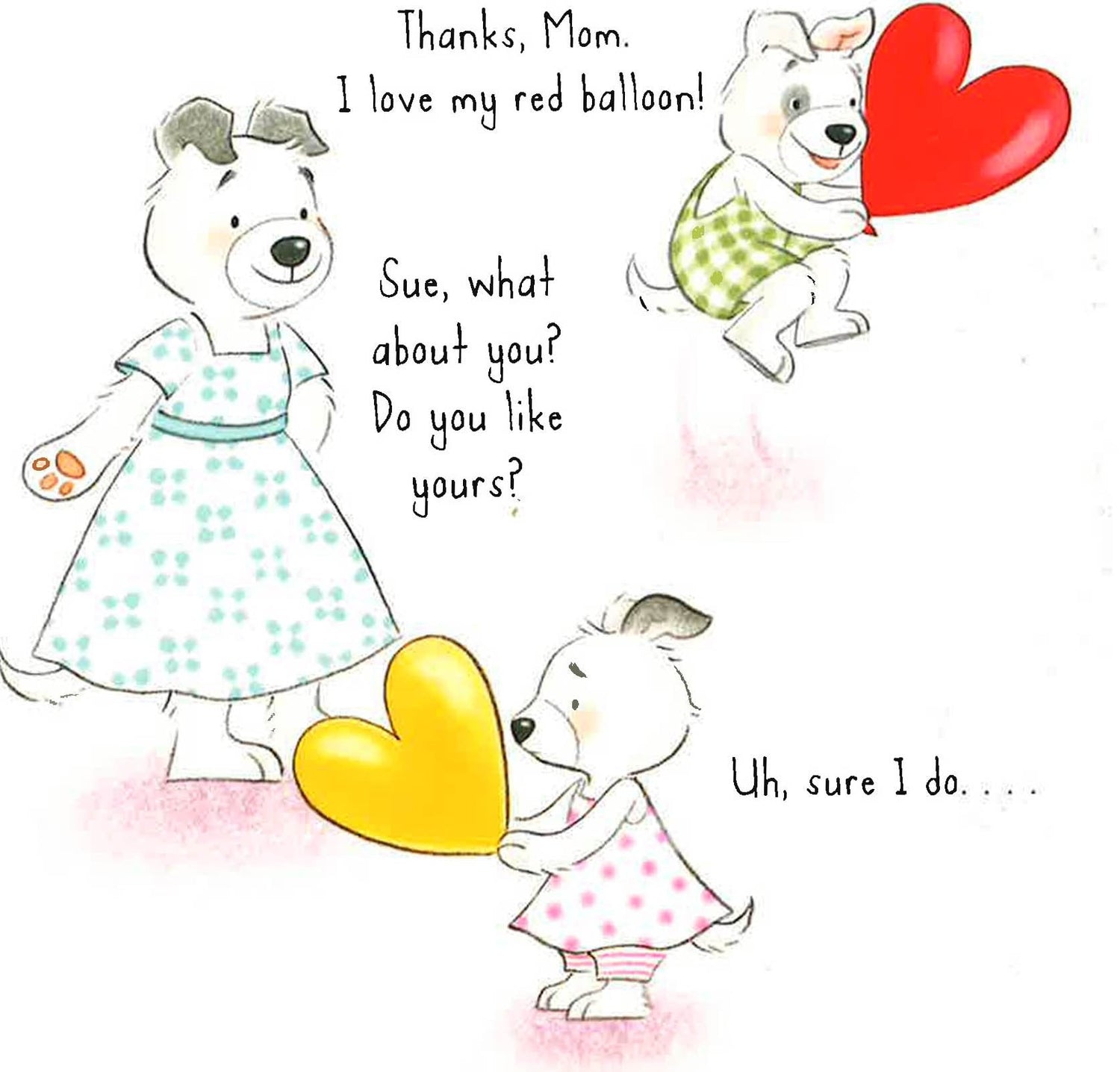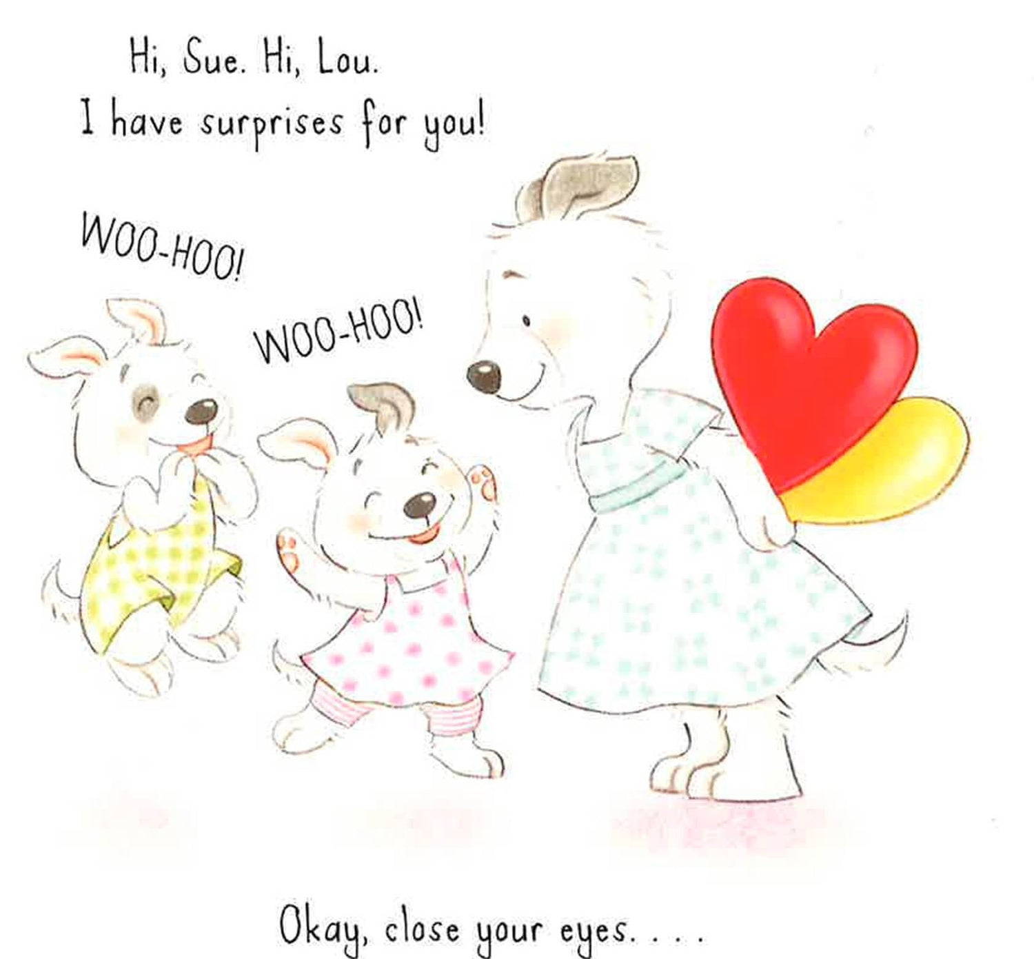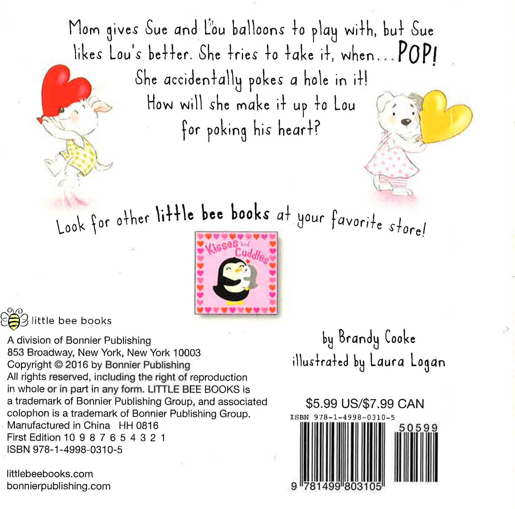 Introducing You Poked My Heart!, a sweet board book featuring adorable puppies! Mom has a surprise for Sue and Lou. Two balloons! A red heart for Lou and a yellow one for Sue. Lou loves his red balloon, but Sue is disappointed with hers and wants Lou's. She tries to take his balloon and accidentally pops it, prompting him to say, "You poked my heart!" Lou becomes very sad. Sue tries to fix the situation and finds a long, skinny red balloon, which she twists and fashions into a heart shape. Sue and Lou make up, and all is well again. Featuring adorable puppy illustrations by Laura Logan, this book is sure to tug (not poke!) at everyone's heart!