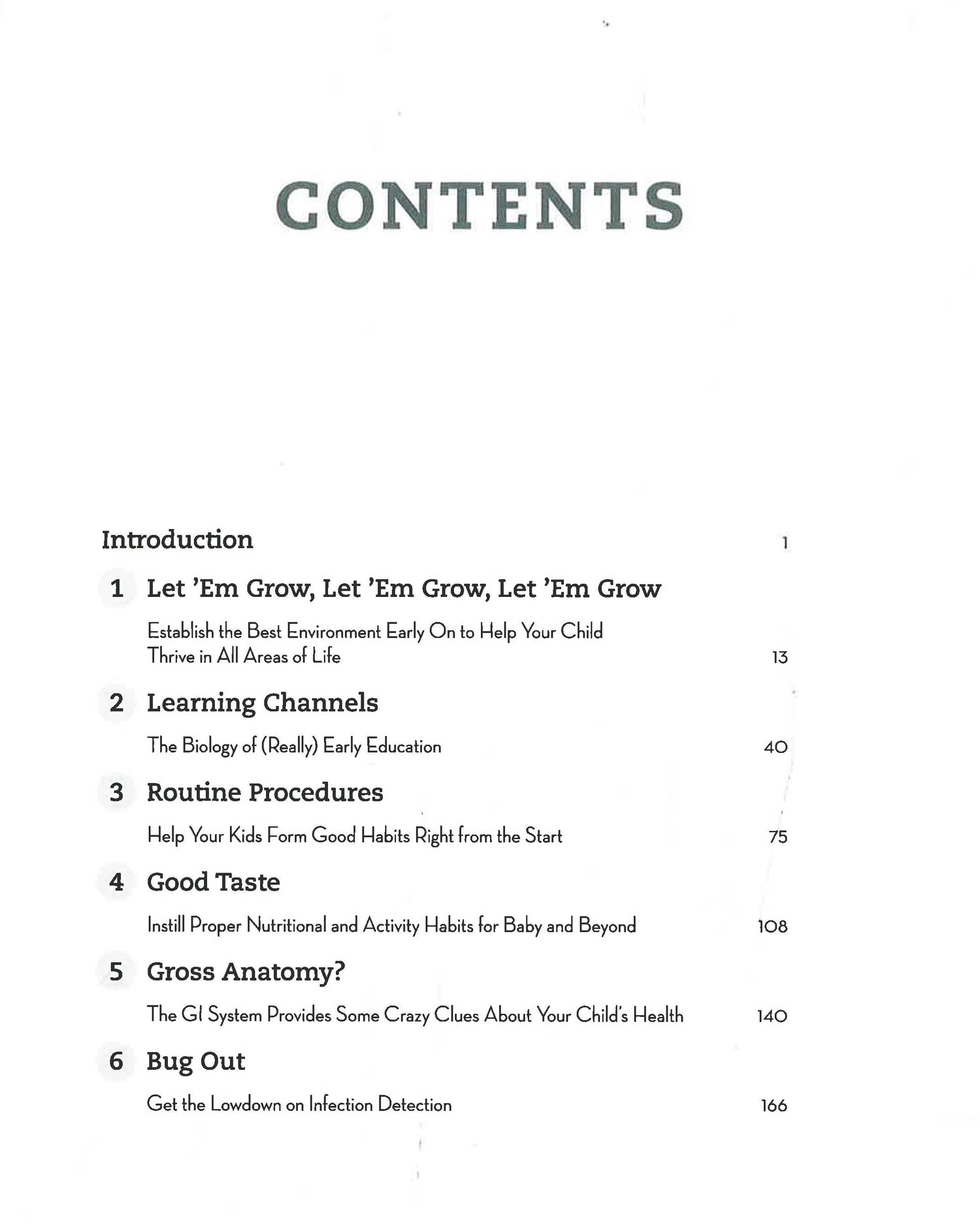 With humor and cutting-edge biological insights, the authors address everything from troubleshooting infant health issues to creating an environment that supports the emotional and intellectual development of your growing child. They talk about the various approaches to parenting—are you a Marshmallow Mommy or an Iron Maiden, passive hyperinvolved? The docs help you identify your style of parenting, encouraging passive parents to create clear boundaries and hypervigilant ones to step back more often and let their kids develop. You will learn to become the ideal parent: firm but flexible. The docs also provide an extensive overview of nuts-and-bolts health problems— from asthma to fevers to emergency room visits and the sensitive issue of vinations.