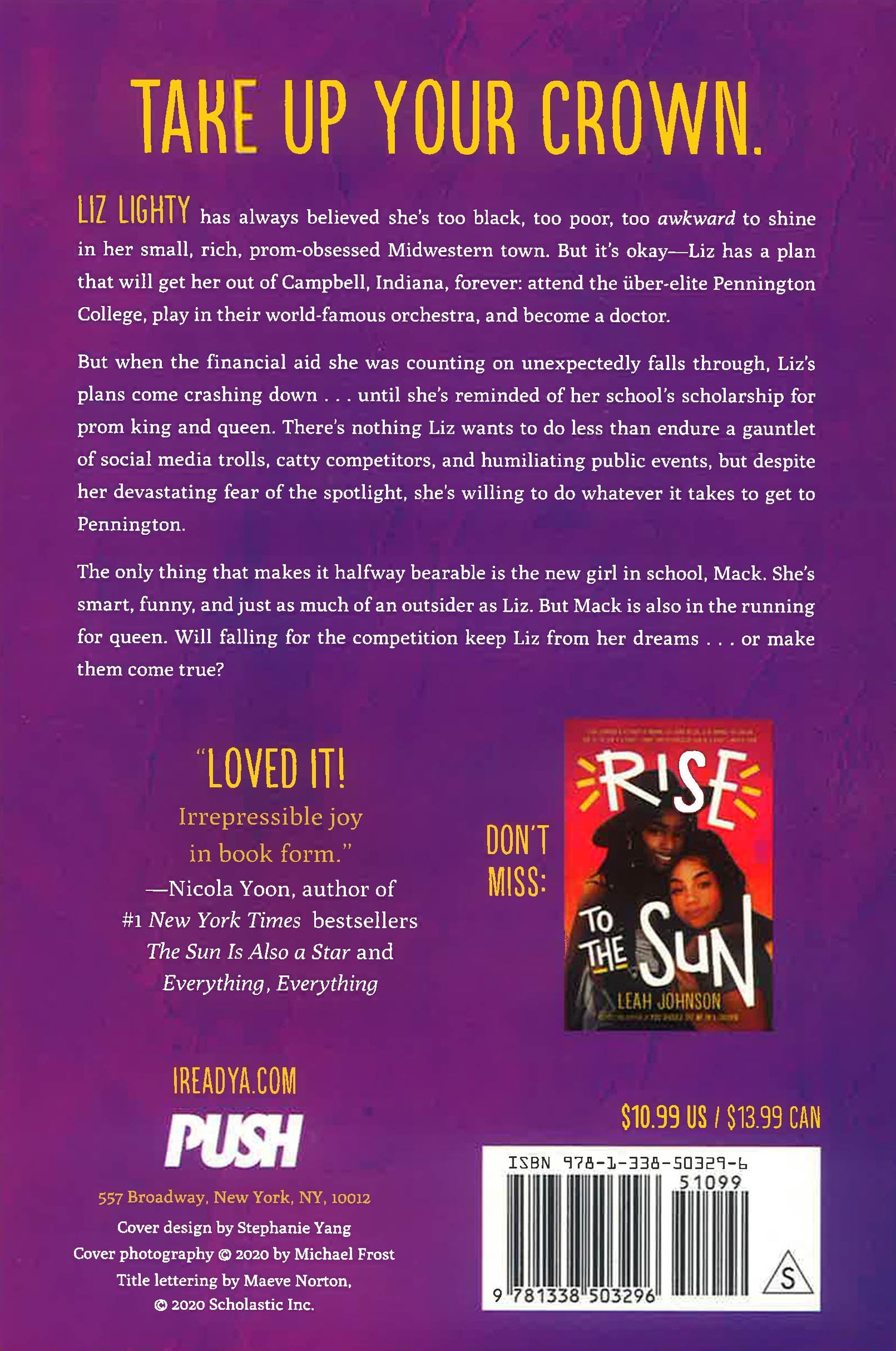 Liz Lighty has always believed she's too black, too poor, too awkward to shine in her small, rich, prom-obsessed midwestern town. But it's okay -- Liz has a plan that will get her out of Campbell, Indiana, forever: attend the uber-elite Pennington College, play in their world-famous orchestra, and become a doctor.But when the financial aid she was counting on unexpectedly falls through, Liz's plans come crashing down . . . until she's reminded of her school's scholarship for prom king and queen. There's nothing Liz wants to do less than endure a gauntlet of social media trolls, catty competitors, and humiliating public events, but despite her devastating fear of the spotlight she's willing to do whatever it takes to get to Pennington.The only thing that makes it halfway bearable is the new girl in school, Mack. She's smart, funny, and just as much of an outsider as Liz. But Mack is also in the running for queen. Will falling for the competition keep Liz from her dreams . . . or make them come true?