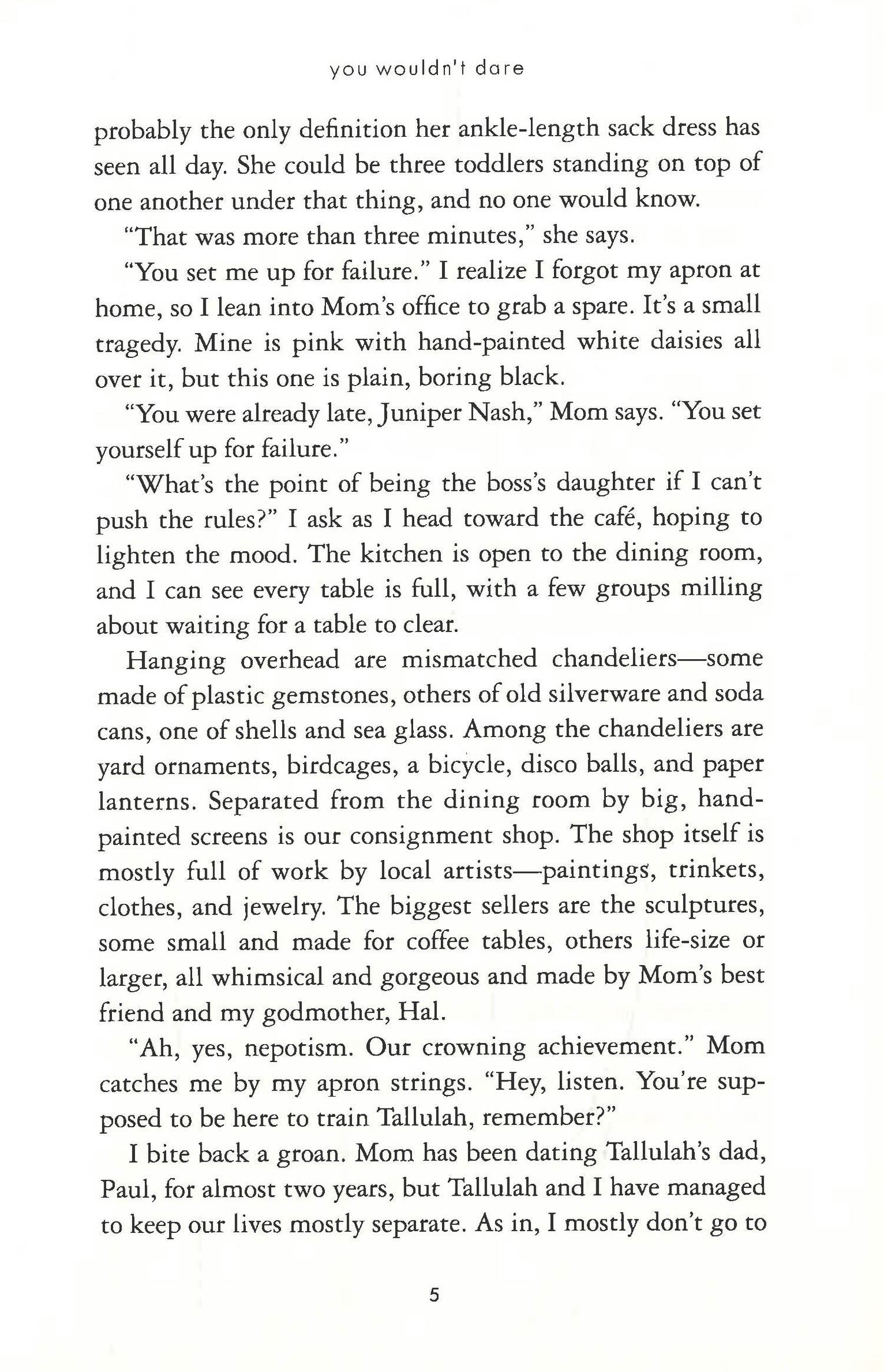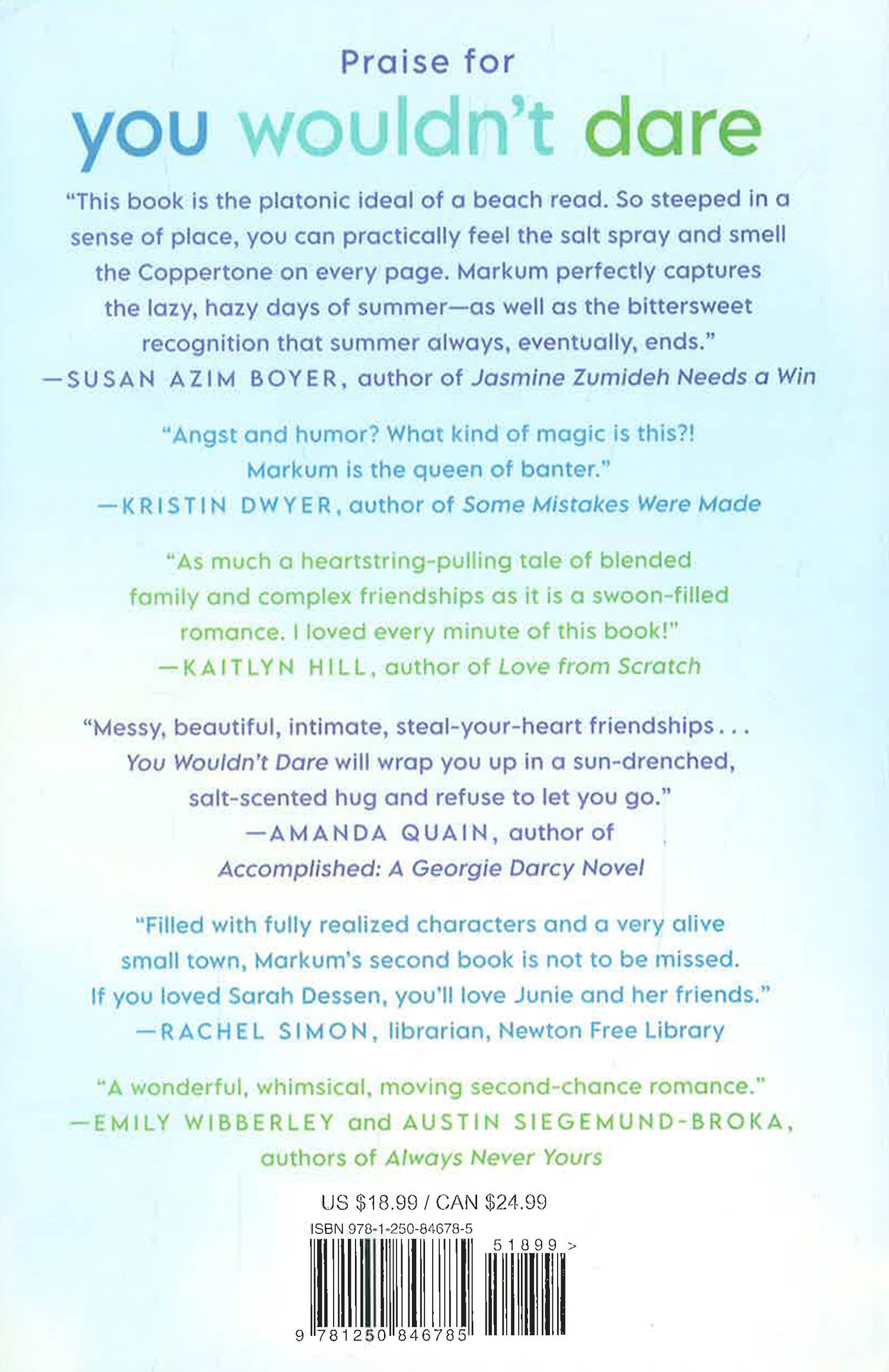 "Perfect for fans of Nina Moreno, Gilmore Girls, and Sarah Dessen, You Wouldn't Dare will wrap you up in a sun-drenched, salt-scented hug and refuse to let you go." - Amanda Quain, author of Accomplished: A Georgie Darcy Novel