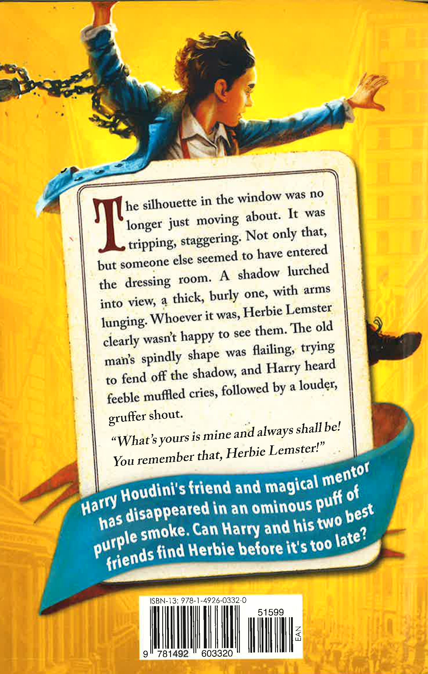 Young Harry Houdini spends his days chaining himself to train tracks and teetering on wires high above the city with his two best friends, Arthur and Billie. But when Harry's friend and magical mentor, Herbie, disappears, the three friends band together, determined to rescue the beloved magician.