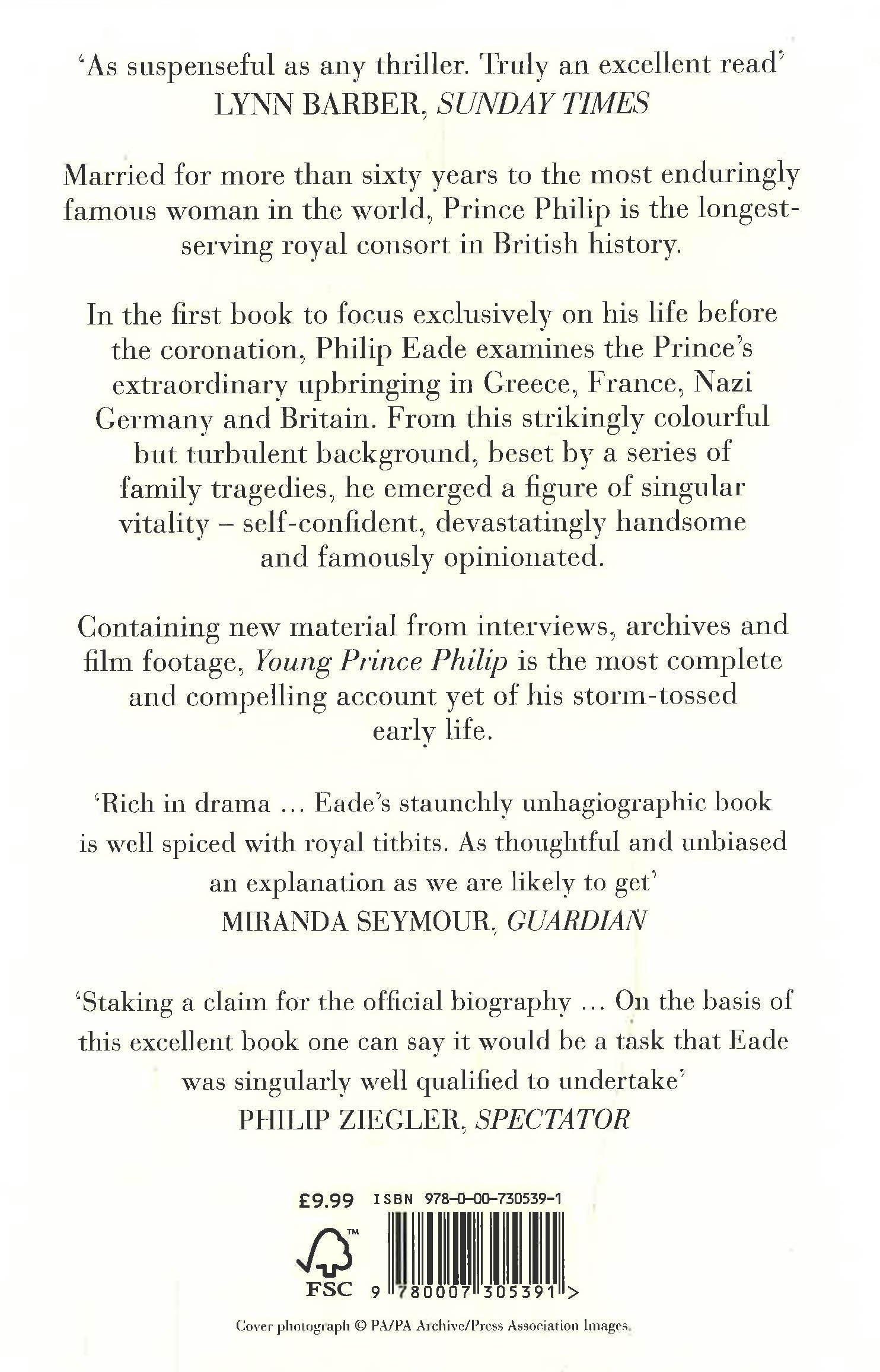 The Sunday Times bestseller A Radio 4 Book of the Week, June 2021 'Highly readable ... deserves to take its place among the first rank of modern royal biographies' Daily Mail 'The narrative is as suspenseful as any thriller. Truly, an excellent read' Lynn Barber, Sunday Times Married for over seventy years to the most famous woman in the world, Prince Philip was the longest-serving royal consort in British history. Yet his origins have remained curiously shrouded in obscurity. In the first book to focus exclusively on his life before the coronation, acclaimed biographer Philip Eade uncovers the extraordinary story of the prince's turbulent upbringing in Greece, France and Nazi Germany, during which his mother spent five years in a secure psychiatric clinic and his father left him to be brought up by his Mountbatten relations in England just when he needed him most. Remarkably the young prince emerged from this unsettled background a character of singular vitality and dash - self-confident, capable, famously opinionated and devastatingly handsome. Girls fell at his feet, and the princess who was to become his wife was smitten from the age of thirteen. Yet alongside the considerable charm and intelligence, the prince was also prone to volcanic outbursts and to putting his foot in it. Detractors perceived in his behaviour emotional shortcomings, a legacy of his traumatic childhood, which would have profound consequences for his family and the future of the monarchy. Containing new material from interviews, archives and film footage, this revelatory biography is the most complete and compelling account yet of his storm-tossed early life.