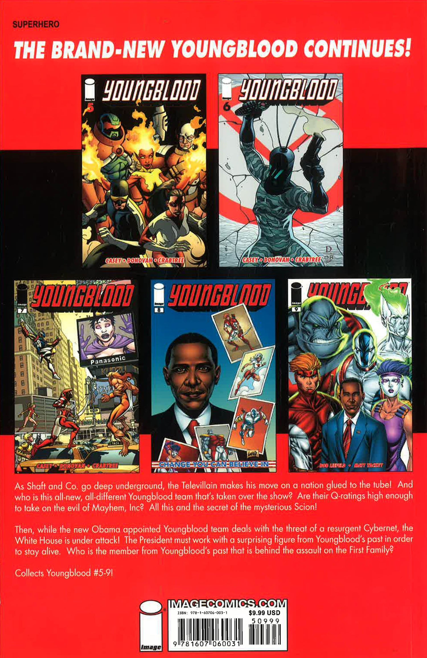 The brand-new Youngblood library continues with this latest collection! As Shaft and Co. go deep underground, the Televillain makes his move on a nation glued to the tube! And who is this all-new, all-different Youngblood team that's taken over the show? Are their Q-ratings high enough to take on the evil of Mayhem, Inc? All this, and the secret of the mysterious Scion!Collects Youngblood #5-8.