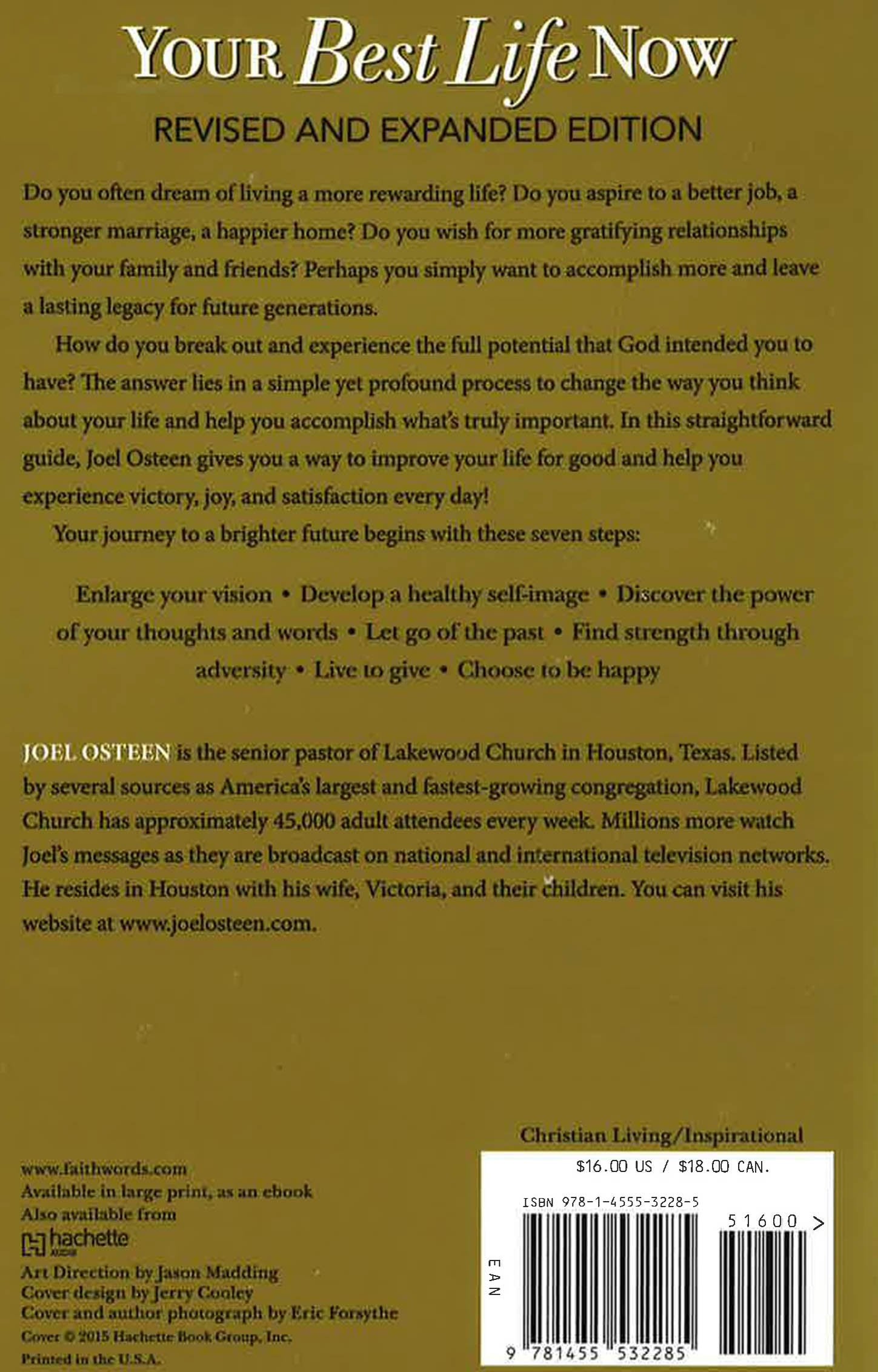 Do you often dream of living a more rewarding life? Do you aspire to a better job, a stronger marriage, a happier home? Do you wish more gratifying relationships with your family and friends? Perhaps you simply want to accomplish more and leave a lasting legacy for future generations. How do you break out and experience the full potential that God intended you to have? The answer lies in a simple yet profound process to change the way you think about your life and help you accomplish what's truly important. In this straightforward guide, Joel Osteen gives you a way to improve your life for good and help you experience victory, joy, and satisfaction every day! Your journey to a brighter future begins with these seven steps: *Enlarge your vision *Develop a healthy self-image *Discover the power of your thoughts and words *Let go of the past *Find strength through adversity *Live to give *Choose to be happy