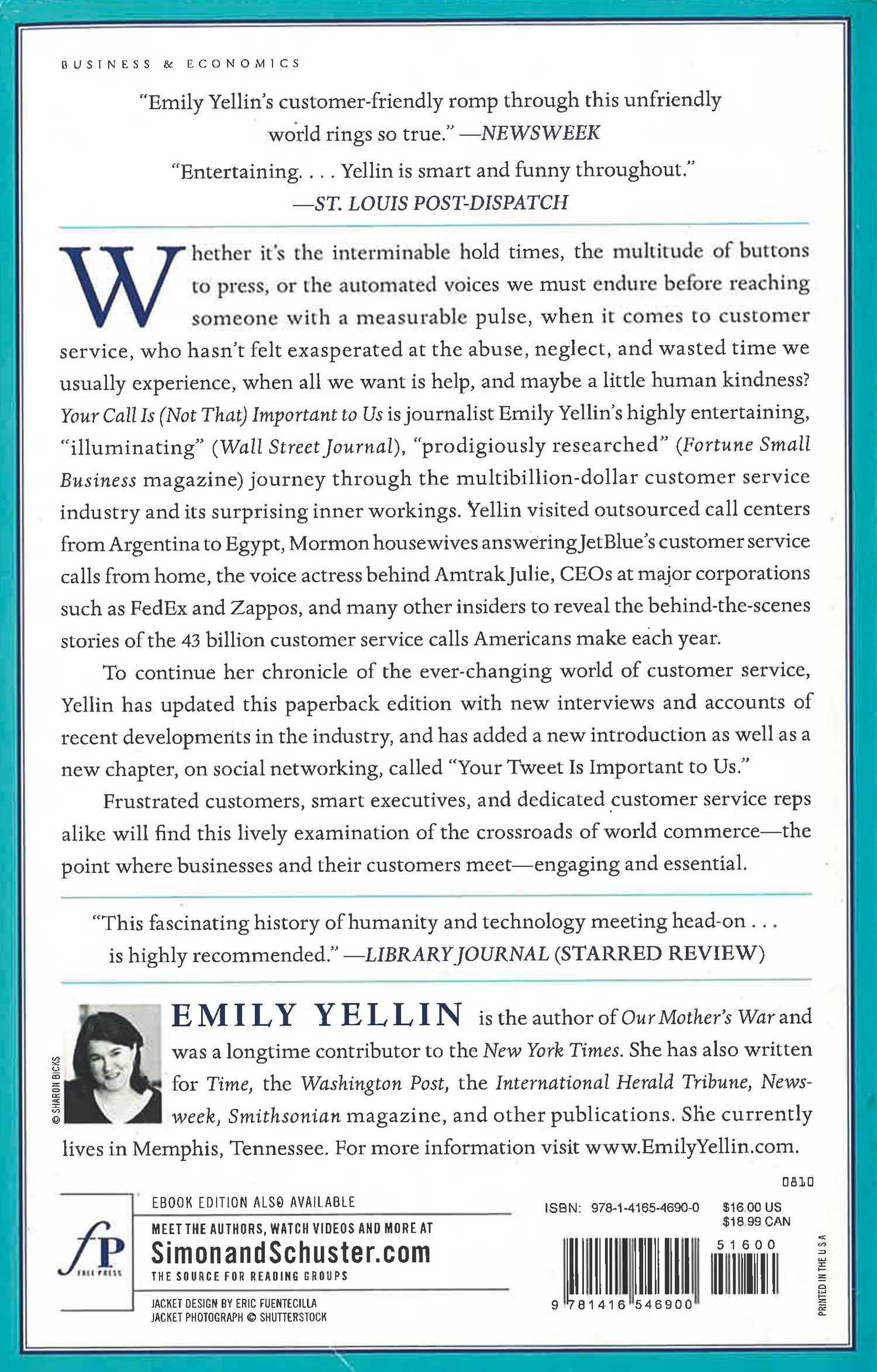 Whether it s the interminable hold times, the multitude of buttons to press, or the automated voices before reaching someone with a measurable pulse who hasn t felt exasperated at the abuse, neglect, and wasted time when all we want is help, and maybe a little human kindness? Your Call Is (not that) Important to Us is journalist Emily Yellin s highly entertaining and far-reaching exploration of the multibillion-dollar customer service industry and its surprising inner-workings. Since customer service has a role in just about every industry on earth, Yellin travels the country and the world, meeting a wide range of customer service reps, corporate decision makers, industry watchers, and Internet-based consumer activists. She shows the myriad forces that converge to create these aggravating experiences and the people inside and outside the globalized corporate world crusading to make customer service better for us all. Because of the fast-moving nature of the industry, the paperback will be revised and updated throughout, including a fresh Introduction. For the first time, Yellin gets at the heart of the human stories behind the often inhuman face of call-center customer ?service and why customer service doesn t have to be this bad.
