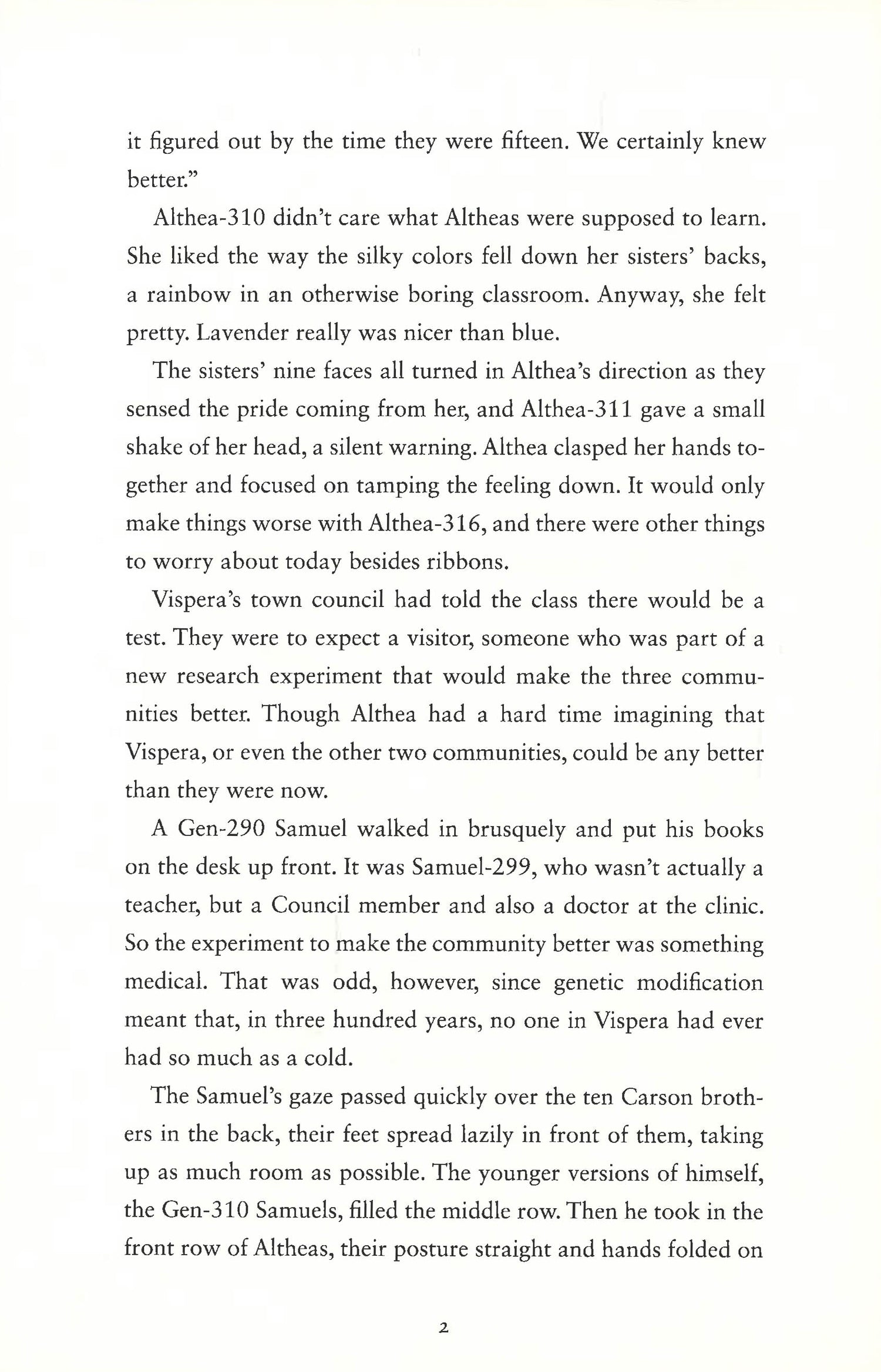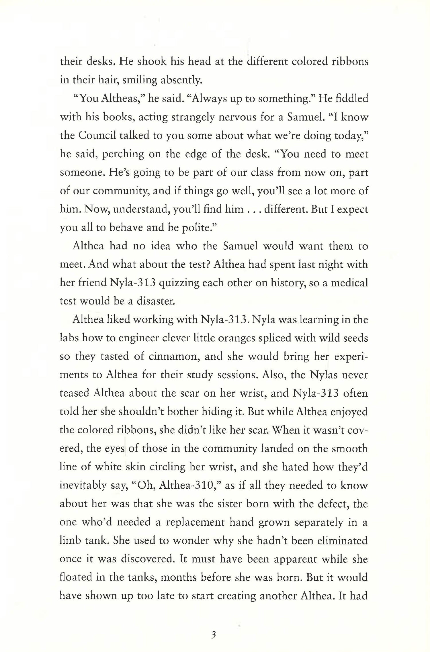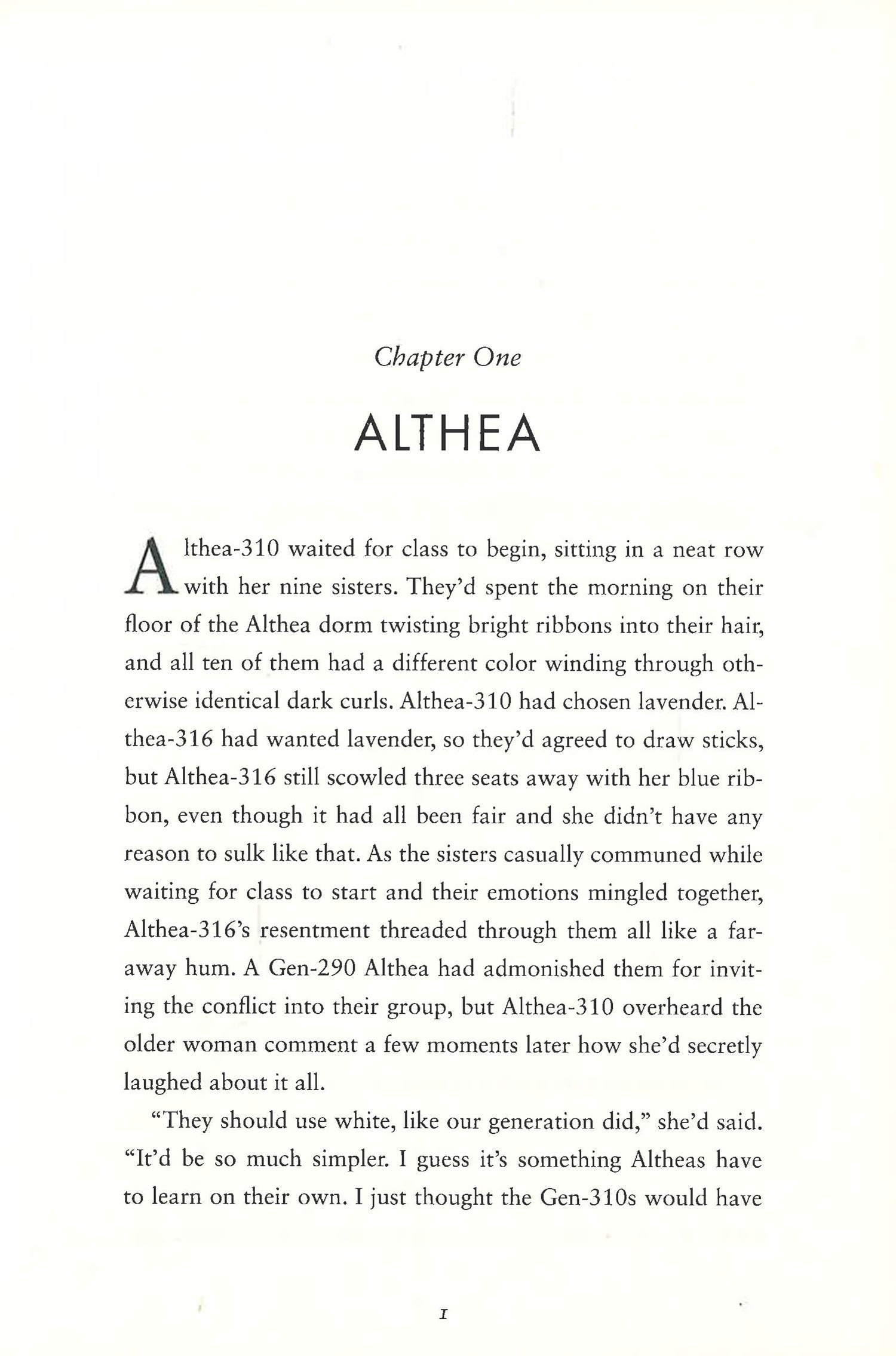 While Jack longs for acceptance, Althea-310 struggles with the feeling that she's different from her sisters. Her fascination with Jack doesn't help. As Althea and Jack's connection grows stronger, so does the threat to their lives. What will happen if they do the unthinkable and fall in love? *This book may have remainder mark.