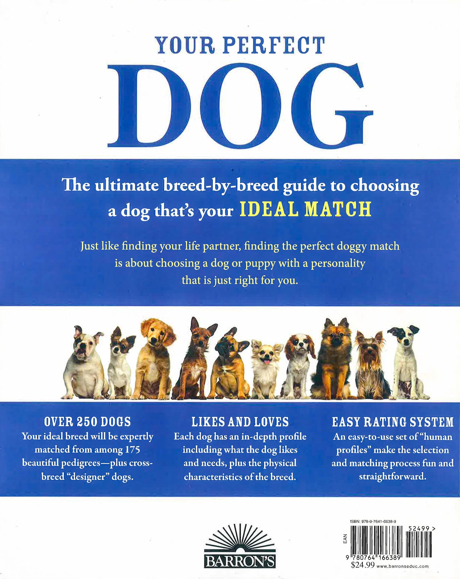 Popular dating web sites use innovative profiling to help people find their ideal matches. In "Your Perfect Dog," a similar approach is used to help prospective dog owners find the best canine for their homes and lifestyles. After all, a pet is a long-term companion that will essentially become a member of the family. It makes sense to ensure that owner and pet personalities are compatible. Renowned canine expert, David Alderton, uses 20 simple human profiles that analyze potential owners by age, work situation, housing, family size, hobbies, fitness, and more. He then profiles 175 dog breeds--from sporting dogs and terriers to herders and hunting dogs--with plenty of details on each dog's physical attributes, likes and dislikes, specific requirements, and more. For each dog, the 20 human profiles are graded on a scale from 1 to 10. A perfect 10 indicates a perfect match! A fun and straightforward way to select a beloved new pet. Includes a glossary of terms and more than 200 color photos.