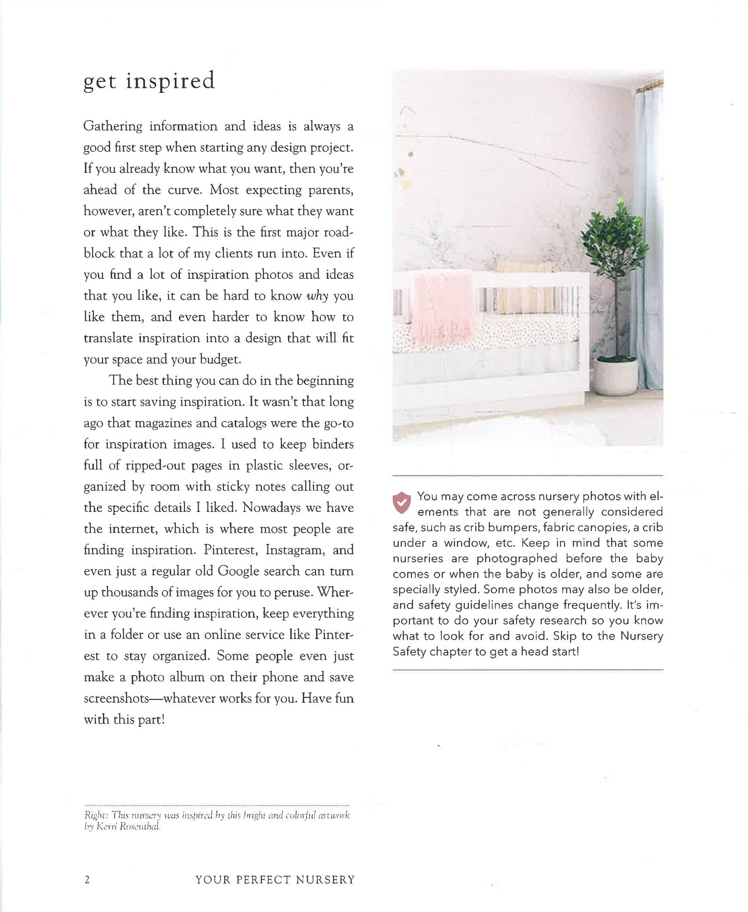 In Your Perfect Nursery, parents-to-be will be showered with advice for identifying their style and personalizing décor, creating a functional floor plan, budgeting and project management, and more—all while ensuring safety is the number one priority. Parents will breathe easy knowing they have a single, organized resource to consult with in this accessible, step-by-step handbook.