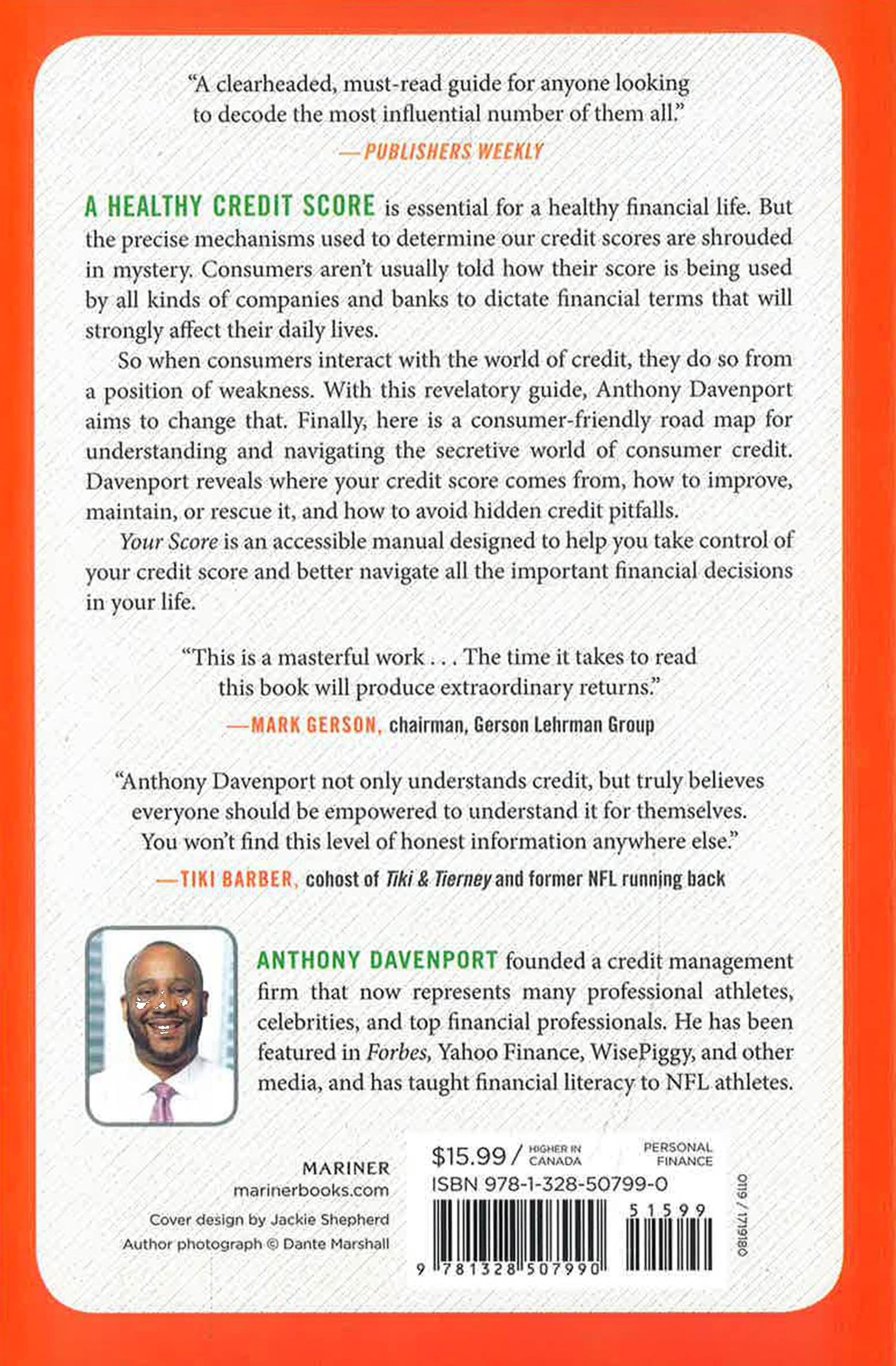 Finally, here is a consumer-friendly road map for understanding and navigating the secretive world of consumer credit. Davenport reveals where your credit score comes from, how to improve, maintain, or rescue it, and how to avoid hidden credit pitfalls. Your Score is an accessible manual designed to help you take control of your credit score and better navigate all the important financial decisions in your life.