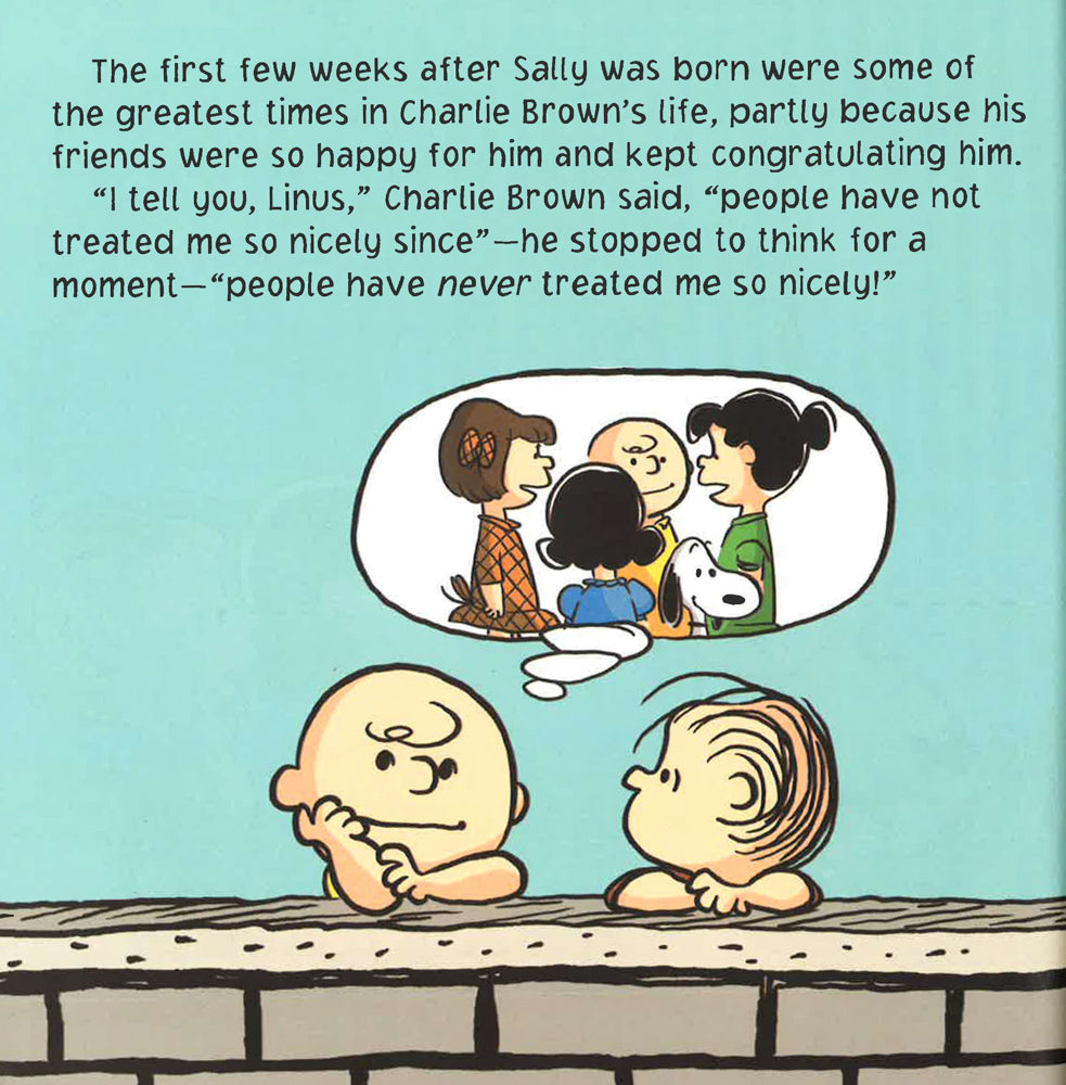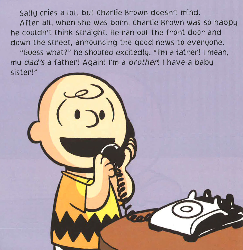 Get to know what it means to be a sibling from Charlie Brown in this 8x8 Peanuts storybook! It's hard to imagine Charlie Brown without his sister, Sally. When she was born, Charlie Brown was so overcome with joy that he told his friends, "I'm a father!" instead of saying he was a big brother! Soon he helps push her in the stroller, Linus teaches her how to hold a blanket, and Snoopy tags along as she crawls around the house! Best of all, Charlie Brown loves his sister no matter what. That's what being a big sibling is all about! (c) 2017 Peanuts Worldwide LLC