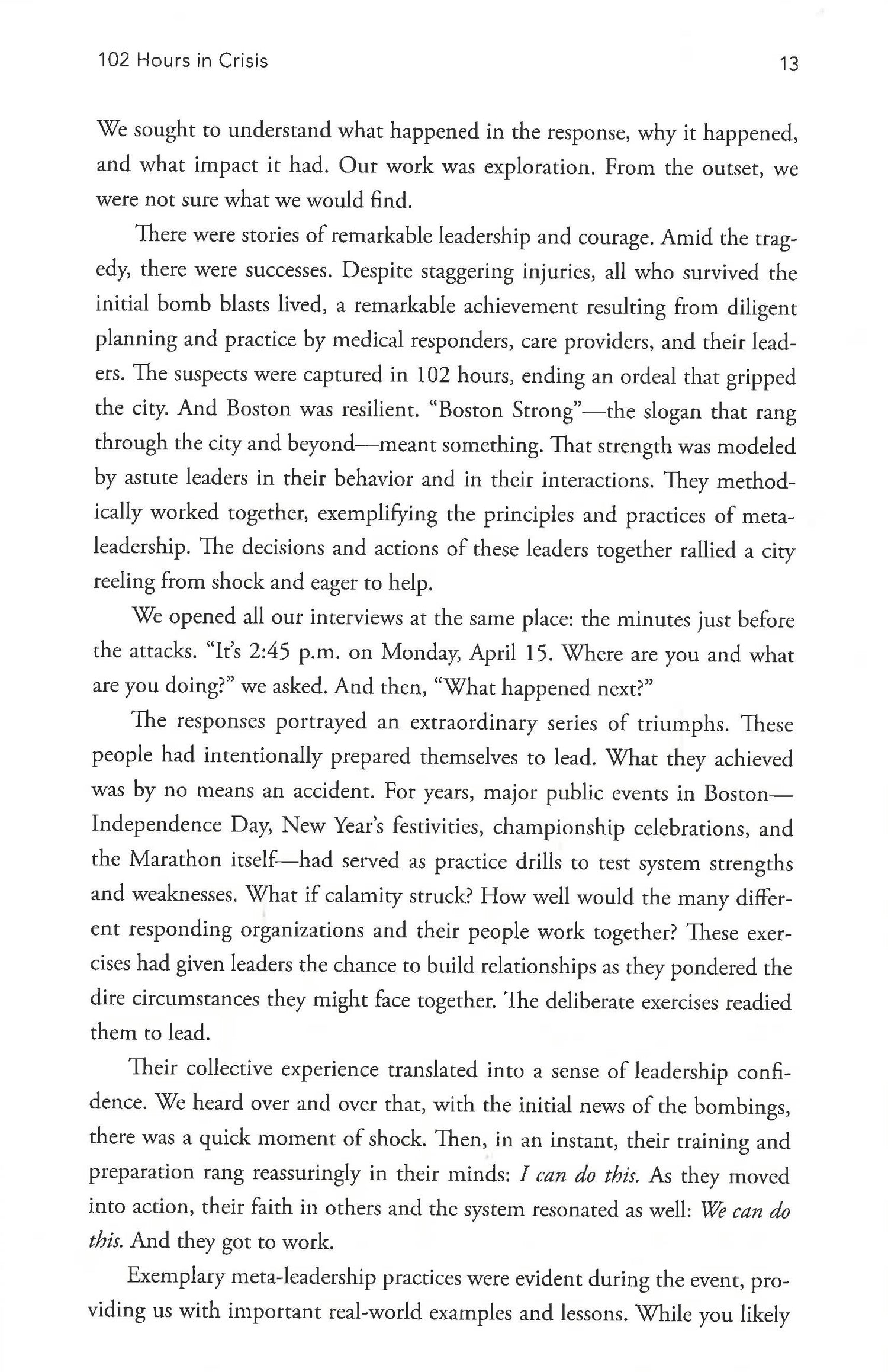 Formed in 2003 on the request of the federal government, the National Preparedness Leadership Initiative at Harvard's Kennedy School of Government has trained political leaders, government officials, members of the armed forces and senior leaders all over the world on how to handle crisis situations. Managing crisis well is at the very heart of good leadership. Here, the NPLI team draws on a deep well of research as well as their experience working with leaders to respond to crisis events of all kinds, from the H1N1 flu epidemic and the Boston Marathon bombings, to more everyday but grave crises like a product recall or media controversy that can hit corporate operations, risking terrible PR and outrage from customers. You're It distills the wisdom the NPLI have gained from observing the way the most effective leaders take charge of situations with real authority, marshal and connect different networks together, and bring their organizations, cities and countries out through the other side of crisis into recovery. It outlines their theories of crisis leadership-as well as lessons on how to apply them every day so you're prepared when the unexpected happens. Filled with true life stories of danger and risk, You're Itis an essential book for anyone potentially facing a crisis or a wrenching change.