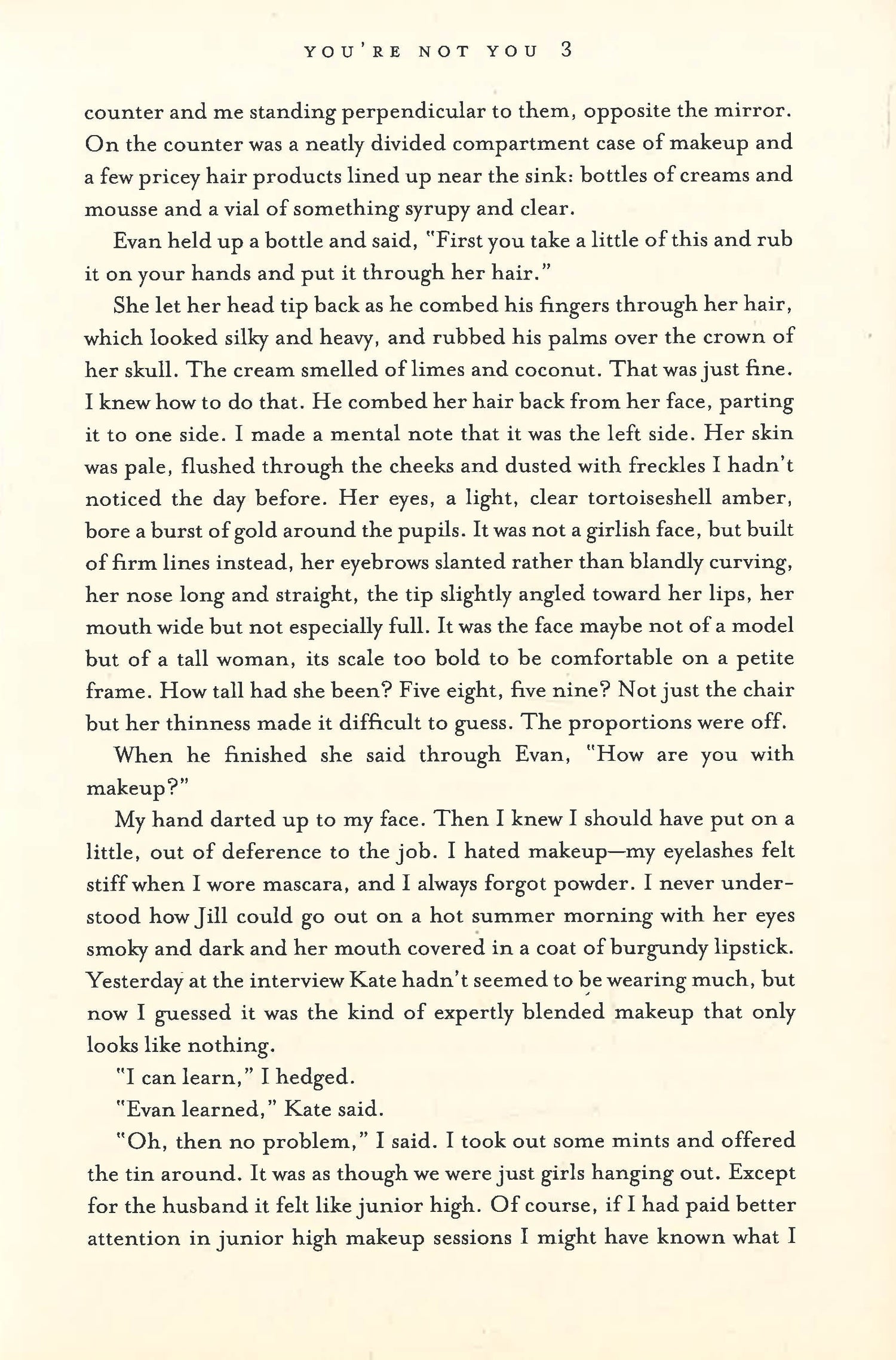 As it turns out, before the disease Kate was a stylish and commanding woman, an advertising executive and an accomplished chef. Now, as she and Bec spend long days together, Bec begins to absorb Kate's sophistication and her sensuality, cooking for her, sharing her secrets, and gradually beginning to live her own life with a boldness informed by Kate's influence. The more intense her commitment to Kate, the further Bec strays from the complacency of her college life. And when Kate's marriage veers into dangerous territory, Bec will have to choose between the values of her old life and the allure of an entirely new one.