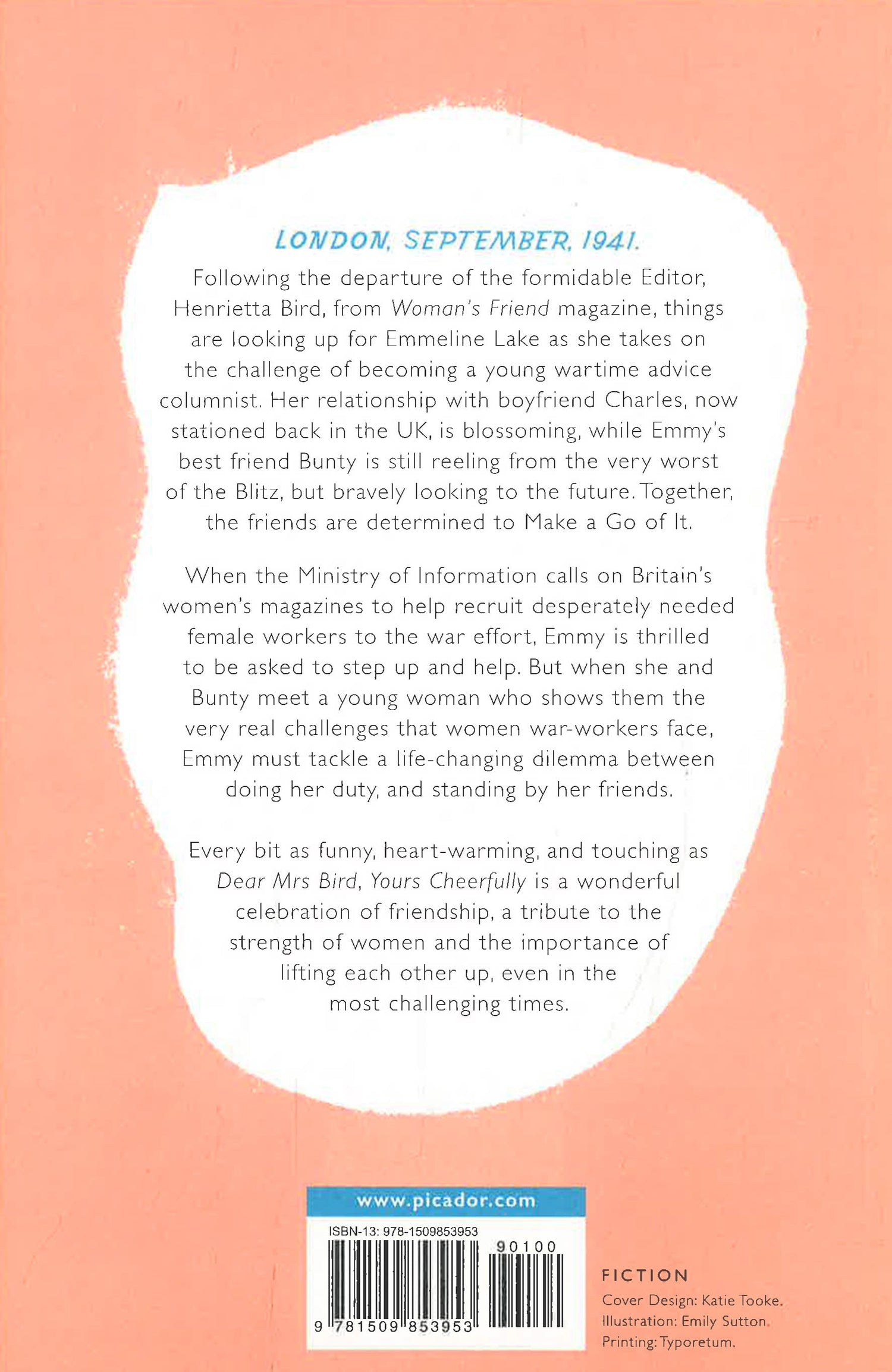 Following the departure of the formidable Editor, Henrietta Bird, from Woman’s Friend magazine, things are looking up for Emmeline Lake as she takes on the challenge of becoming a young wartime advice columnist. Her relationship with boyfriend Charles is blossoming, while Emmy’s best friend Bunty, is still reeling from the very worst of the Blitz, but bravely looking to the future. Together, the friends are determined to Make a Go of It.