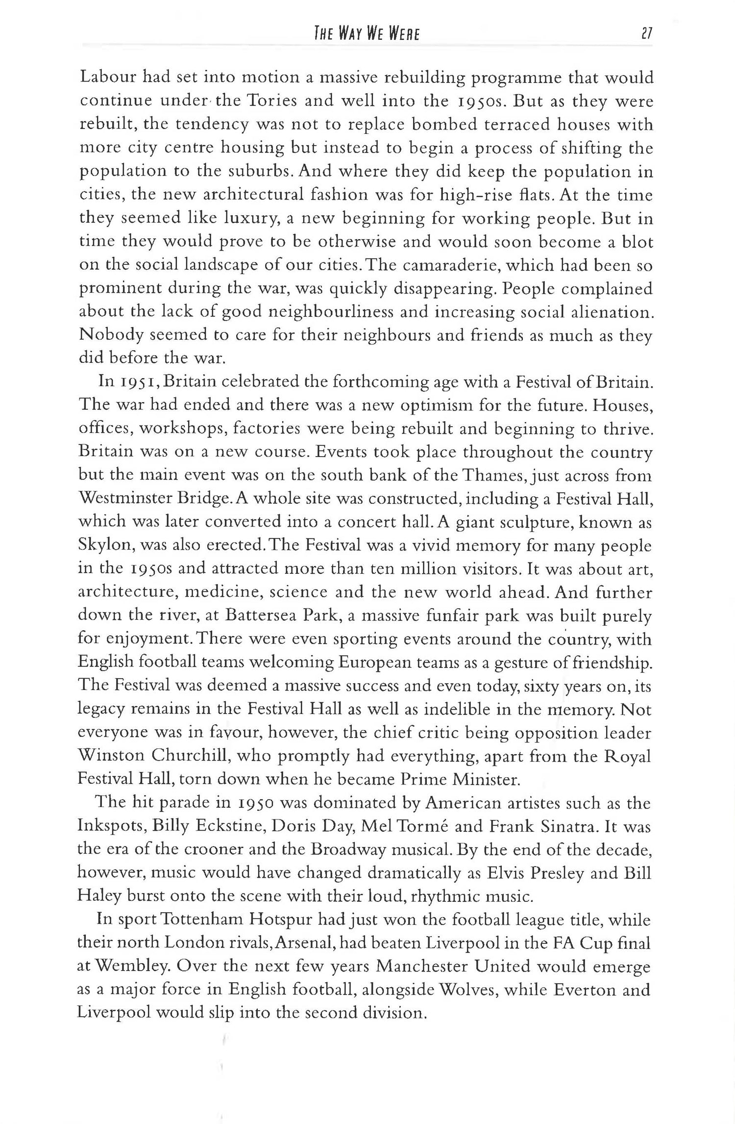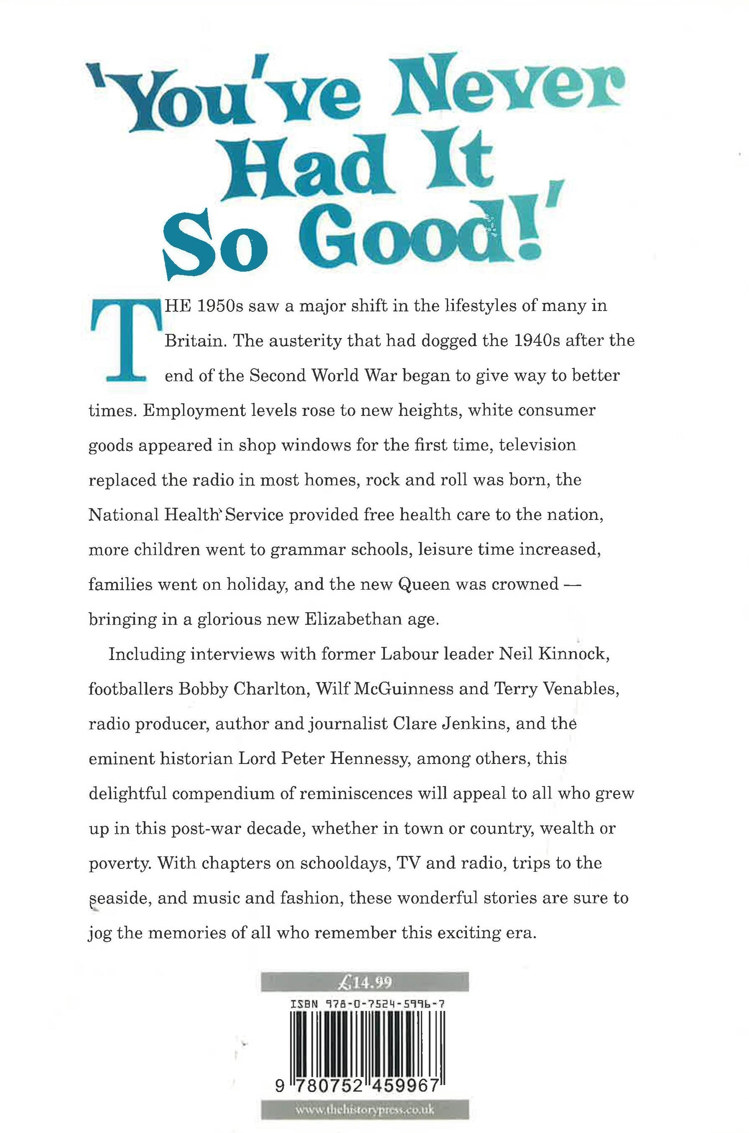 Including interviews with former Labour leader Lord Neil Kinnock, footballers Bobby Charlton, Wilf McGuinness and Terry Venables, radio producer, author and journalist Clare Jenkins, and the eminent historian Lord Peter Hennessy, among others, this delightful compendium of reminiscences will appeal to all who grew up in this post-war decade, whether in town or country, wealth or poverty. With chapters on schooldays, TV and radio, trips to the seaside, music and fashion, these wonderful stories are sure to jog the memories of all who remember this exciting era.