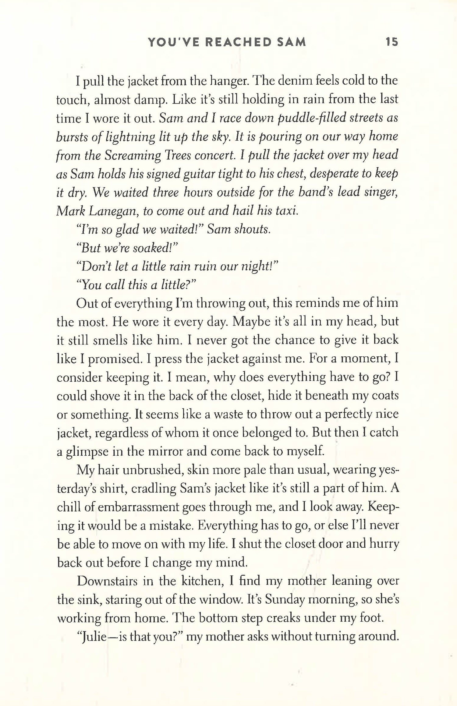 If I Stay meets Your Name in this heartfelt novel about love and loss and what it means to say goodbye. How do you move forward when everything you love in on the line? Seventeen-year-old Julie has her future all planned out―move out of her small town with her boyfriend Sam, attend college in the city, spend a summer in Japan. But then Sam dies. And everything changes. Heartbroken, Julie skips his funeral, throws out his things, and tries everything to forget him and the tragic way he died. But a message Sam left behind in her yearbook forces back memories. Desperate to hear his voice one more time, Julie calls Sam’s cellphone just to listen to his voicemail. And Sam picks up the phone. In a miraculous turn of events, Julie’s been given a second chance at goodbye. The connection is temporary. But hearing Sam’s voice makes her fall for him all over again and, with each call, it becomes harder to let him go. However, keeping her otherworldly calls with Sam a secret isn’t easy, especially when Julie witnesses the suffering Sam’s family is going through. Unable to stand by the sidelines and watch their shared loved ones in pain, Julie is torn between spilling the truth about her calls with Sam and risking their connection and losing him forever.