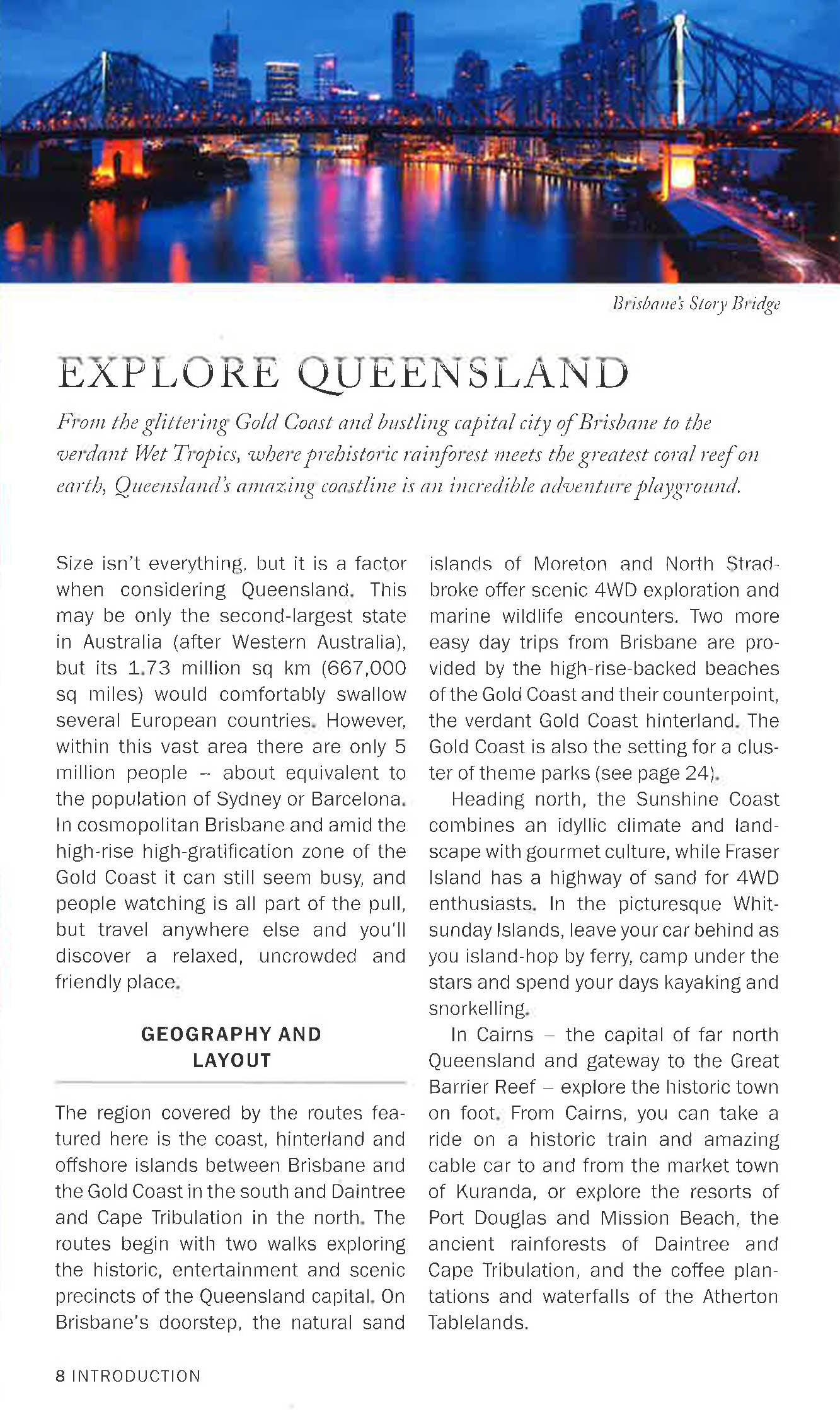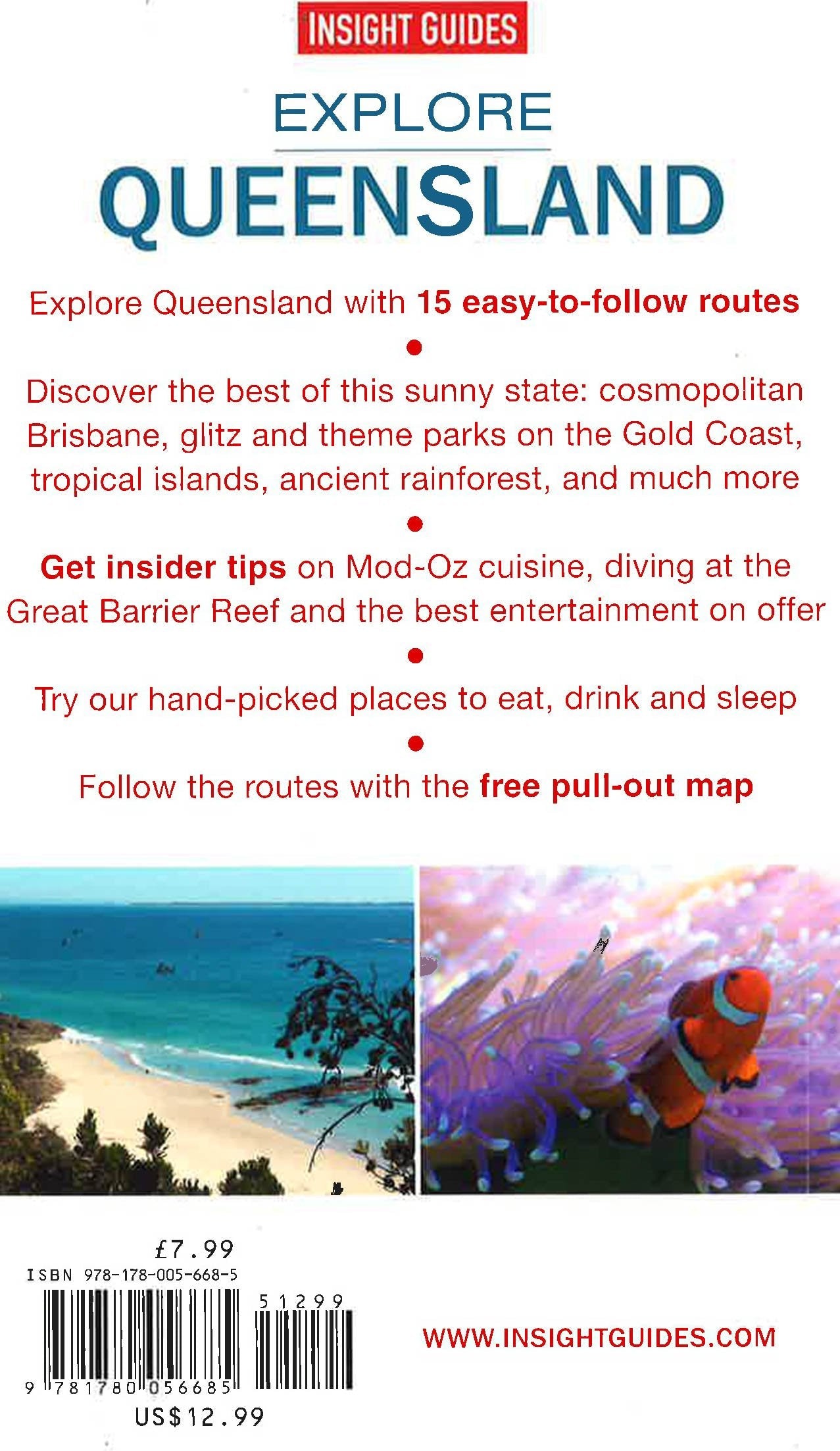 From the glittering Gold Coast and bustling capital of Brisbane to the tropical north, where prehistoric rainforest meets the world's greatest coral reef, Queenland's coastline offers an unrivalled adventure playground. Explore Queensland is part of a brand-new series and is the ideal pocket companion when discovering Queensland: a full-colour guide containing 15 easy-to-follow routes with a wealth of activities on offer, including sailing from the Whitsunday Islands with their tropical beaches, sand driving on Fraser Island and spotting crocodiles in the far north's Wet Tropics. Insight's trademark cultural coverage perfectly sets the routes in context, with introductions to Queensland's cuisine, theme parks, and of course, diving and snorkelling at the Great Barrier Reef. Each route guides you through an interesting area with clear directions, a detailed map and authentic places to eat and drink along the way. The directory section contains a wealth of practical information and a range of carefully selected hotels to suit all budgets. All routes are also plotted on the pull-out map. Whether you are new to the island or a repeat visitor, and however long your stay, Explore Queensland will help you discover Queensland's sunny beauty.