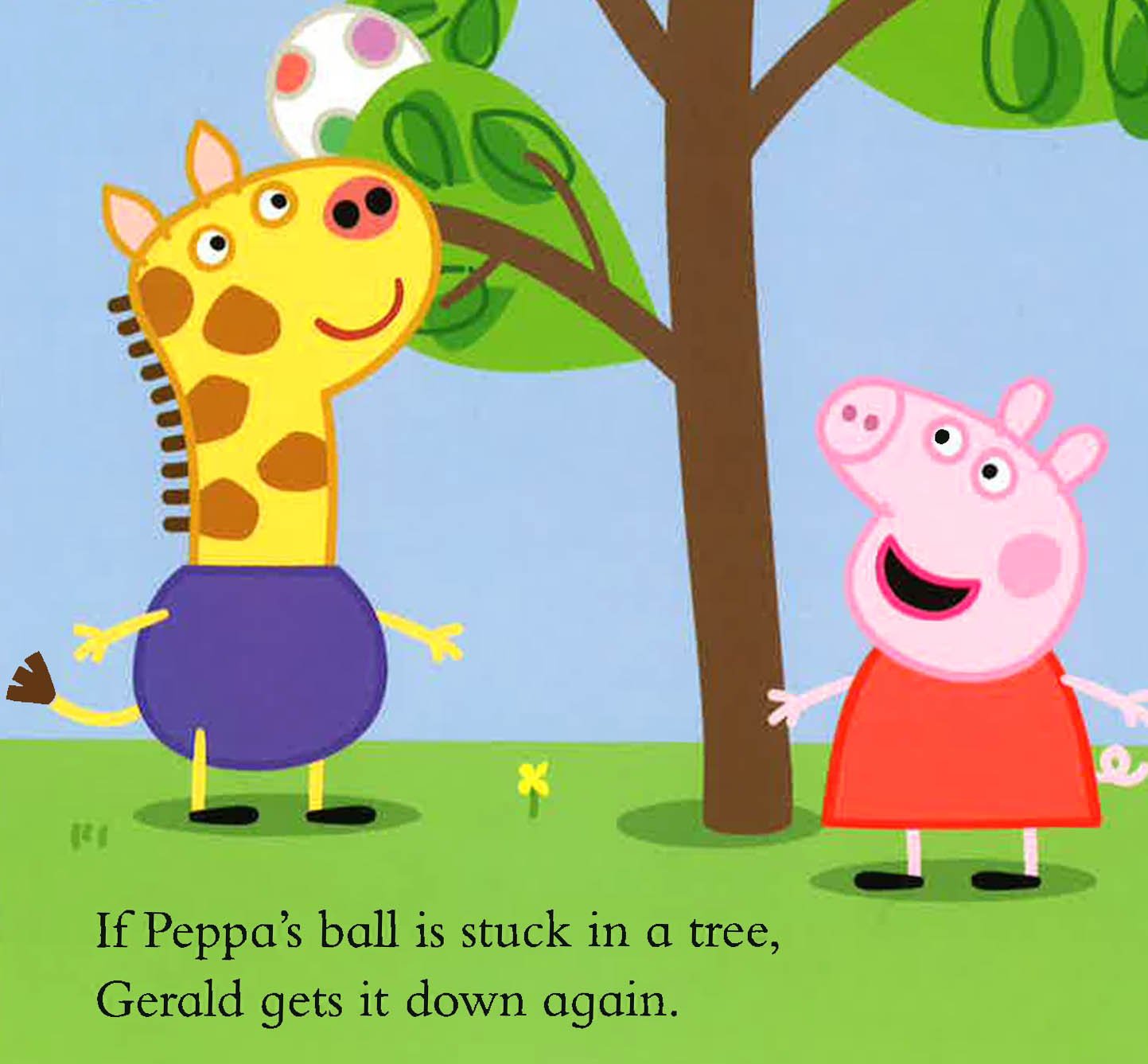 Peppa loves playing with her friend Gerald Giraffe. They like reading stories together