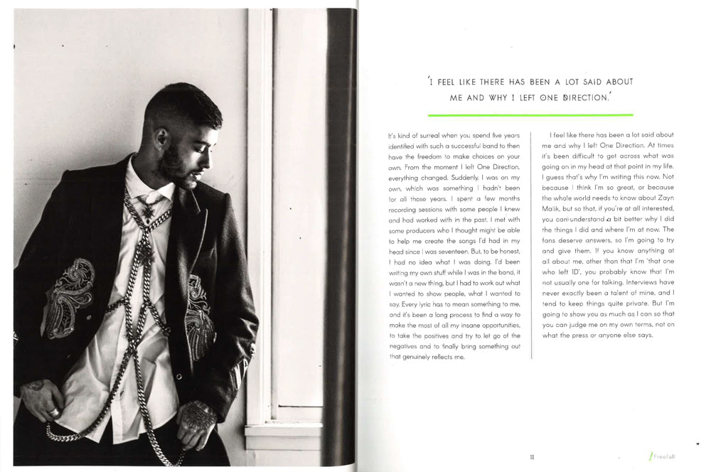 The first and only official book from ZAYN. Global superstar ZAYN shares a photographic journey of his life since leaving One Direction. After five years of massive success with One Direction, ZAYN launched his career as a solo artist with Mind of Mine, becoming one of the most successful artists in the world. Now, for the first time ever, ZAYN is going to tell and show all in this intimate and raw scrapbook of his life. Never-before-released photos give readers insight to ZAYN, no-holds-barred. Gorgeously designed with hundreds of full-color photographs and ZAYN’s notes, drawings, song lyrics, and personal stories, the book captures ZAYN’s most private moments and his candid feelings on fame, success, music, and life. The next chapter of ZAYN’s evolution into global superstar, told by the artist who is living it.