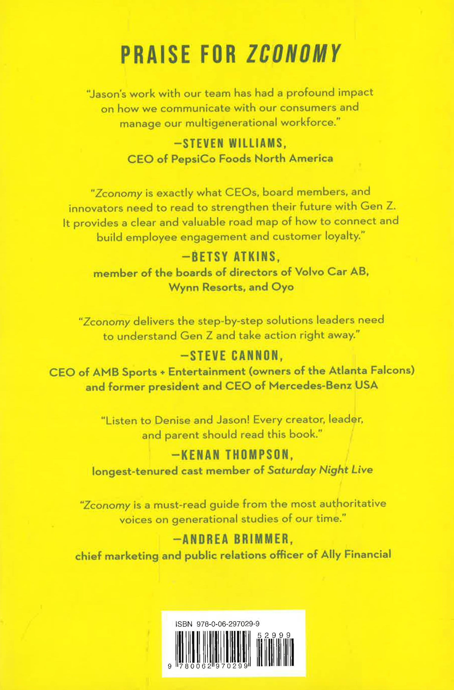 The most complete and authoritative guide to Gen Z, describing how leaders must adapt their employment, sales and marketing, product, and growth strategies to attract and keep this important new generation of customers, employees and trendsetters.Gen Z changes everything. Today's businesses are not built to sell and market the way Gen Z shops and buys, or to recruit and employ Gen Z the way they find and keep jobs. Leaders need answers now as gen Z is the fastest growing generation of employees and the most important group of consumer trendsetters. The companies that quickly and comprehensively adapt to Gen Z thinking will be the winners for the next twenty years. Those that don't will be the losers or become extinct. Zconomy is the comprehensive survival guide on how leaders must understand and embrace Generation Z. Researched and written by Dr. Denise Villa and Jason Dorsey from The Center for Generational Kinetics, the insights in Zconomy are based on their extensive research, they've led more than 60 generational studies, and their work with more than 500 companies around the world.In Zconomy, Dr. Villa and Dorsey answer: Who is Gen Z? What do employers, marketers, and sales leaders need to know? And, most importantly, what should leaders do now?This is the critical moment for leaders to understand and adapt to Gen Z or become irrelevant. Gen Z is already reshaping the world of business and this change is only going to accelerate. Zconomy is the definitive manual that will prepare any executive, manager, entrepreneur, HR or marketing professional to successfully unlock the powerful potential of this emerging generation at this pivotal time.