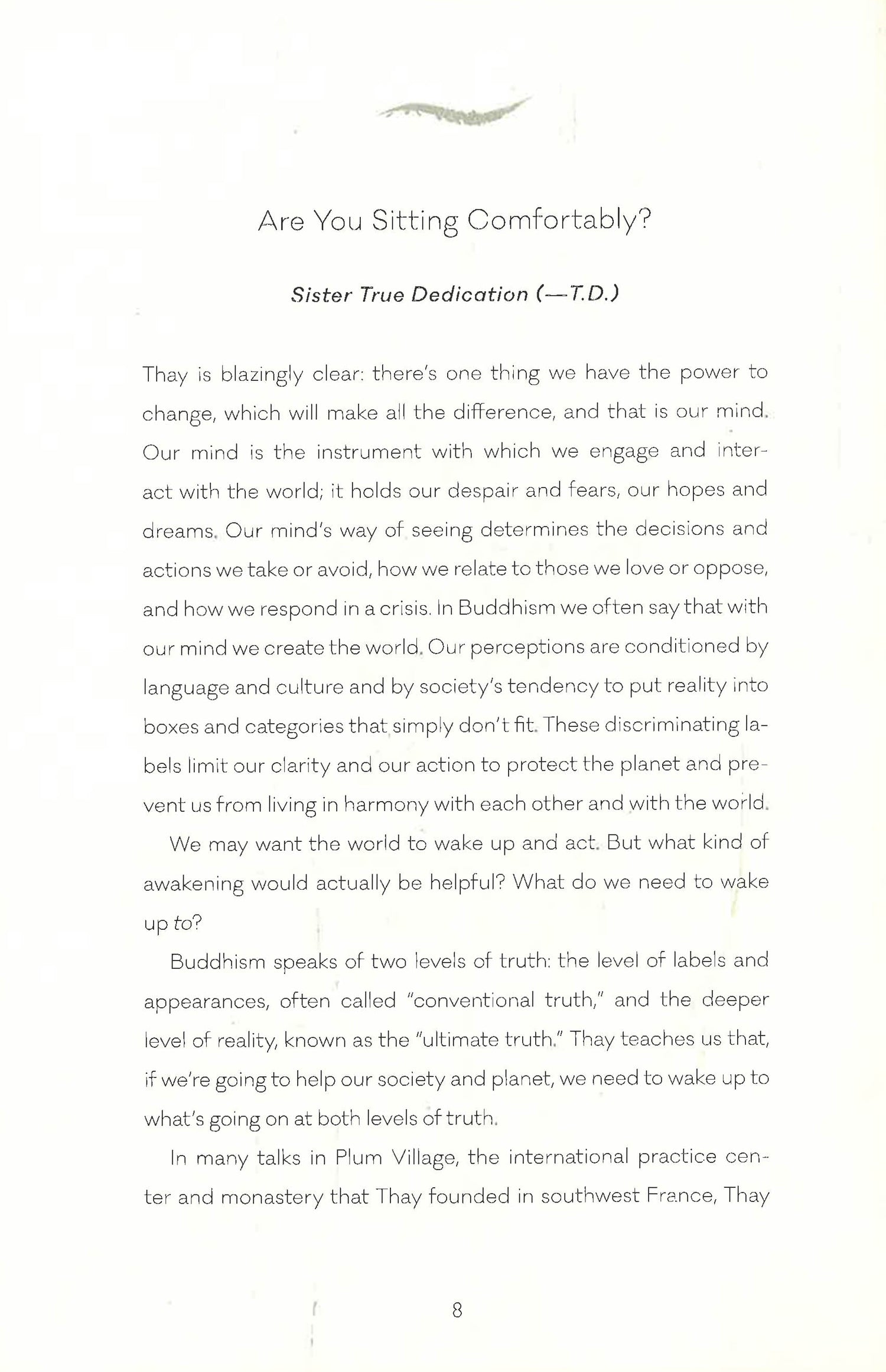 Beloved Zen Master Thich Nhat Hanh is blazingly clear: there’s one thing we all have the power to change, which can make all the difference, and that is our mind. Our way of looking, seeing, and thinking determines every choice we make, the everyday actions we take or avoid, how we relate to those we love or oppose, and how we react in a crisis.