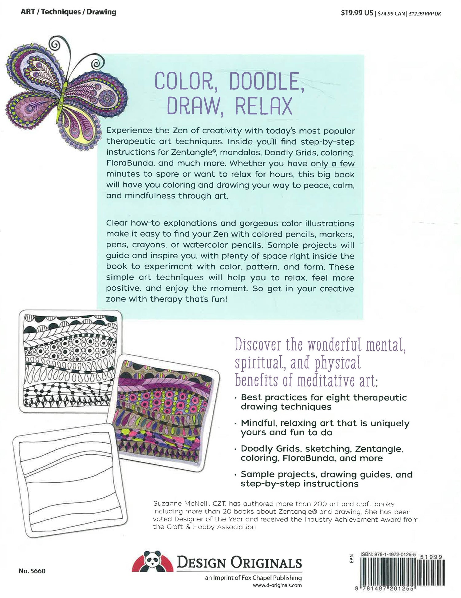 Experience the Zen of creativity with today's most popular therapeutic art techniques. Inside you'll find step-by-step instructions for Zentangle(R), mandalas, Doodly Grids, coloring, FloraBunda, and much more. Whether you have only a few minutes to spare or want to relax for hours, this big book will have you coloring and drawing your way to peace, calm, and mindfulness through art.