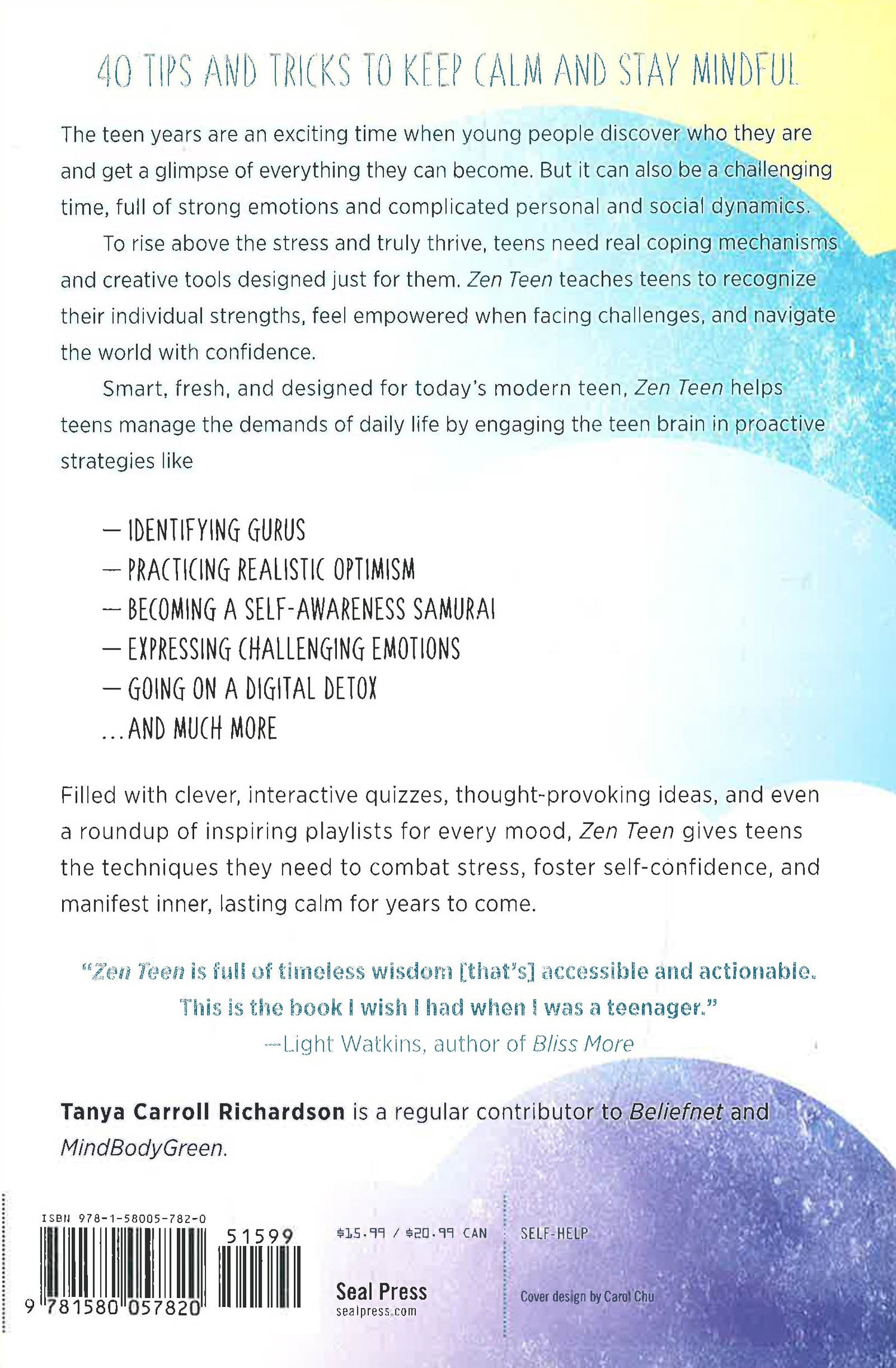 Zen Teen addresses this epidemic with powerful coping mechanisms and creative tools-including two fun quizzes, tons of engaging exercises and a cool playlist-designed for the teenage mind. With topics like "The Unique Genius of You" and "Rock-Star Rituals," Tanya Carroll Richardson prompts teens to get calm by engaging in mindful tasks, like identifying gurus, tapping into warrior energy, mastering meditation, practicing realistic optimism, becoming a self-awareness samurai, learning to surrender, discovering personal dharma, finding a spirit animal, expressing challenging emotions, living loving-kindness, protecting the planet, and making vision boards that embrace "the Tao of Cool."