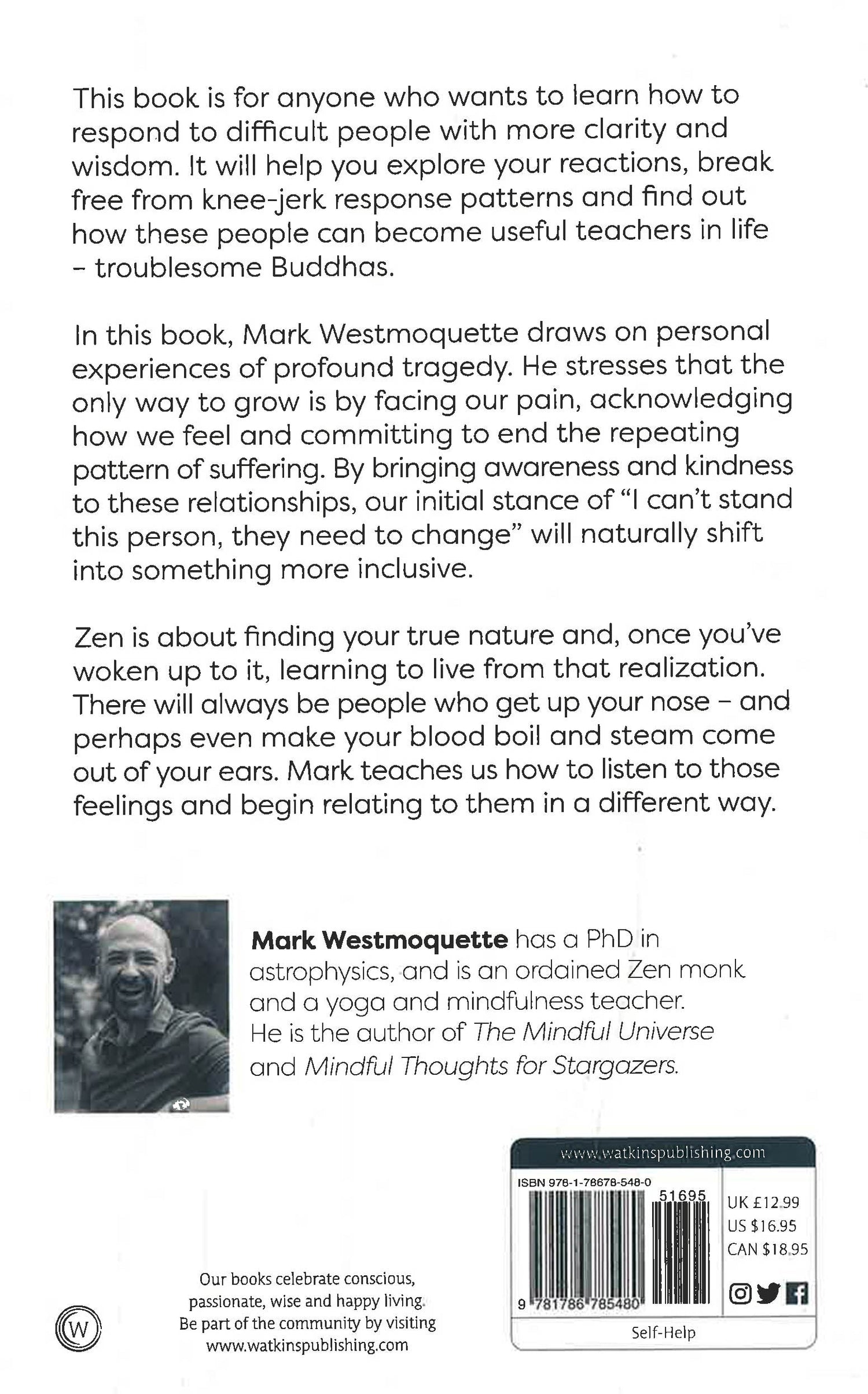 In this book, Mark Westmoquette speaks from a place of profound personal experience. A Zen monk, he has endured two life-changing traumas caused by other people: his sexual abuse by his own father; and his stepfather's death and mother's very serious injury in a car crash due to the careless driving of an off-duty policeman. He stresses that by bringing awareness and kindness to these relationships, our initial stance of "I can't stand this person, they need to change" will naturally shift into something much broader and more inclusive. The book makes playful use of Zen koans - apparently nonsensical phrases or stories - to help jar us out of habitual ways of perceiving the world and nudge us toward a new perspective of wisdom and compassion.