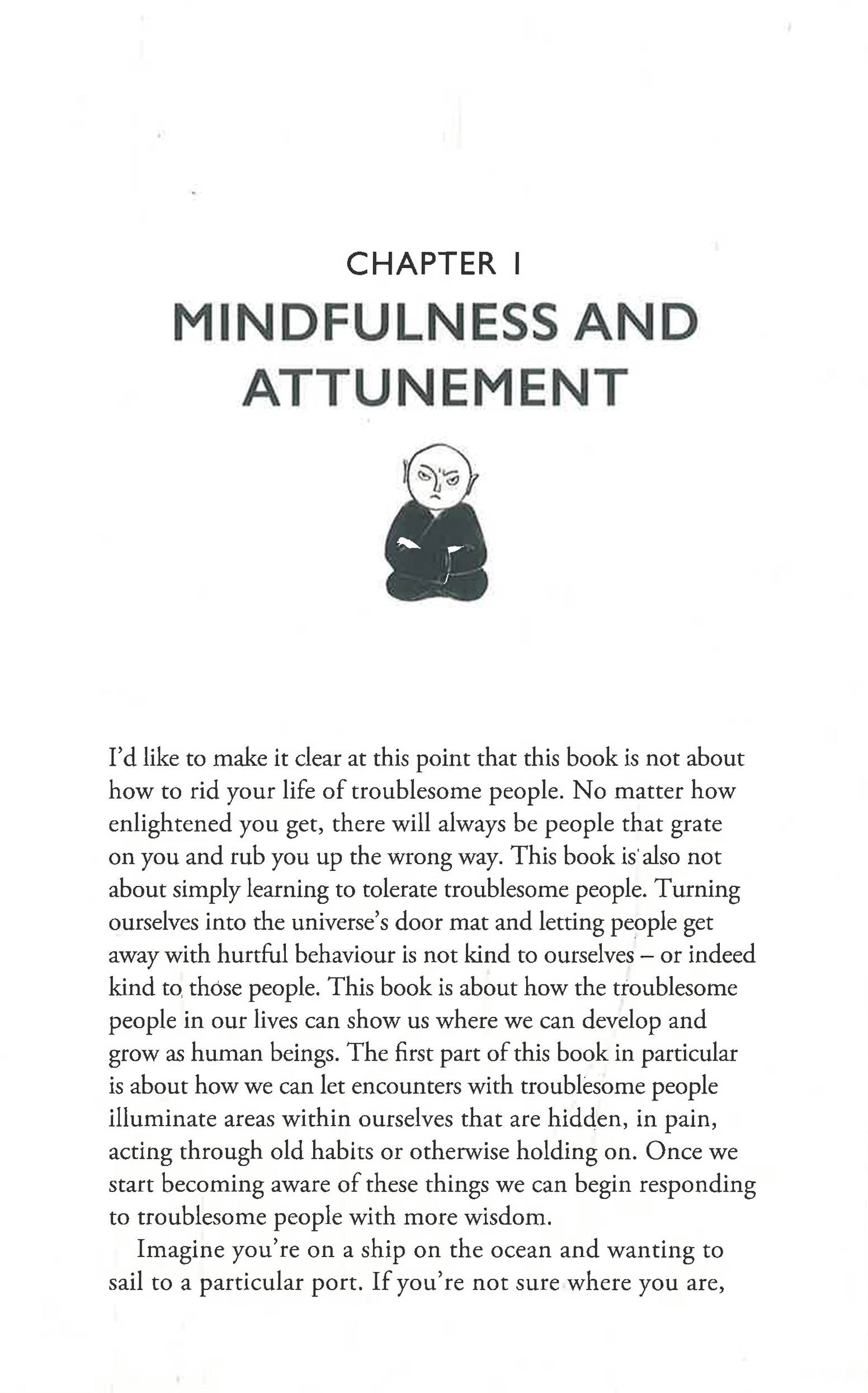 This is a guide to applying the teachings of mindfulness and Zen to the troublesome or challenging people in our lives. Perhaps you can see there's often a pattern to your behaviour in relation to them and that it often causes pain - perhaps a great deal of pain. The only way we can grow is by facing this pain, acknowledging how we feel and how we've reacted, and making an intention or commitment to end this repeating pattern of suffering.