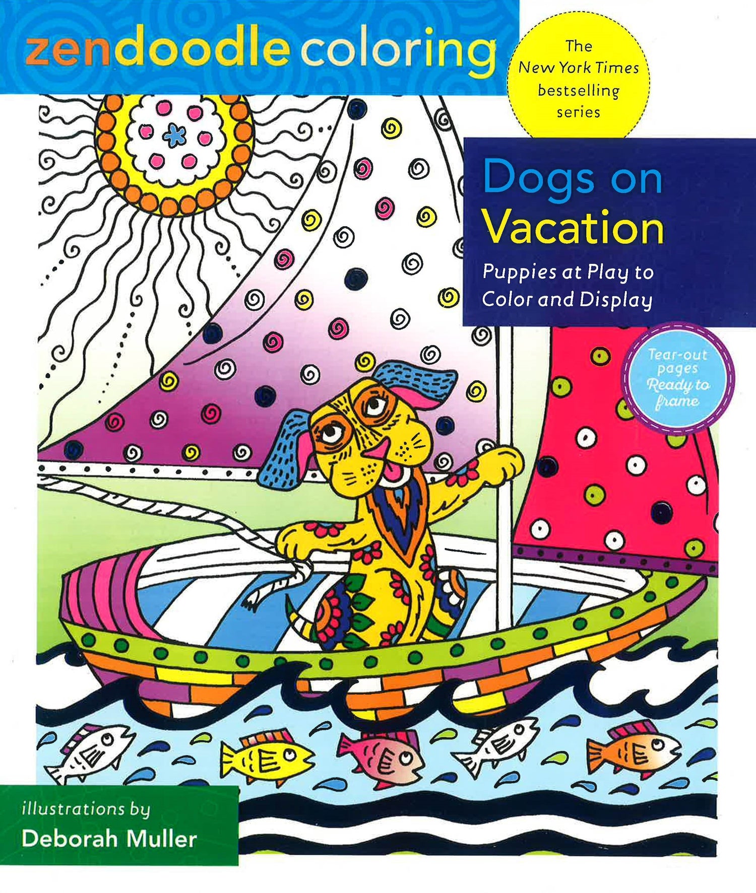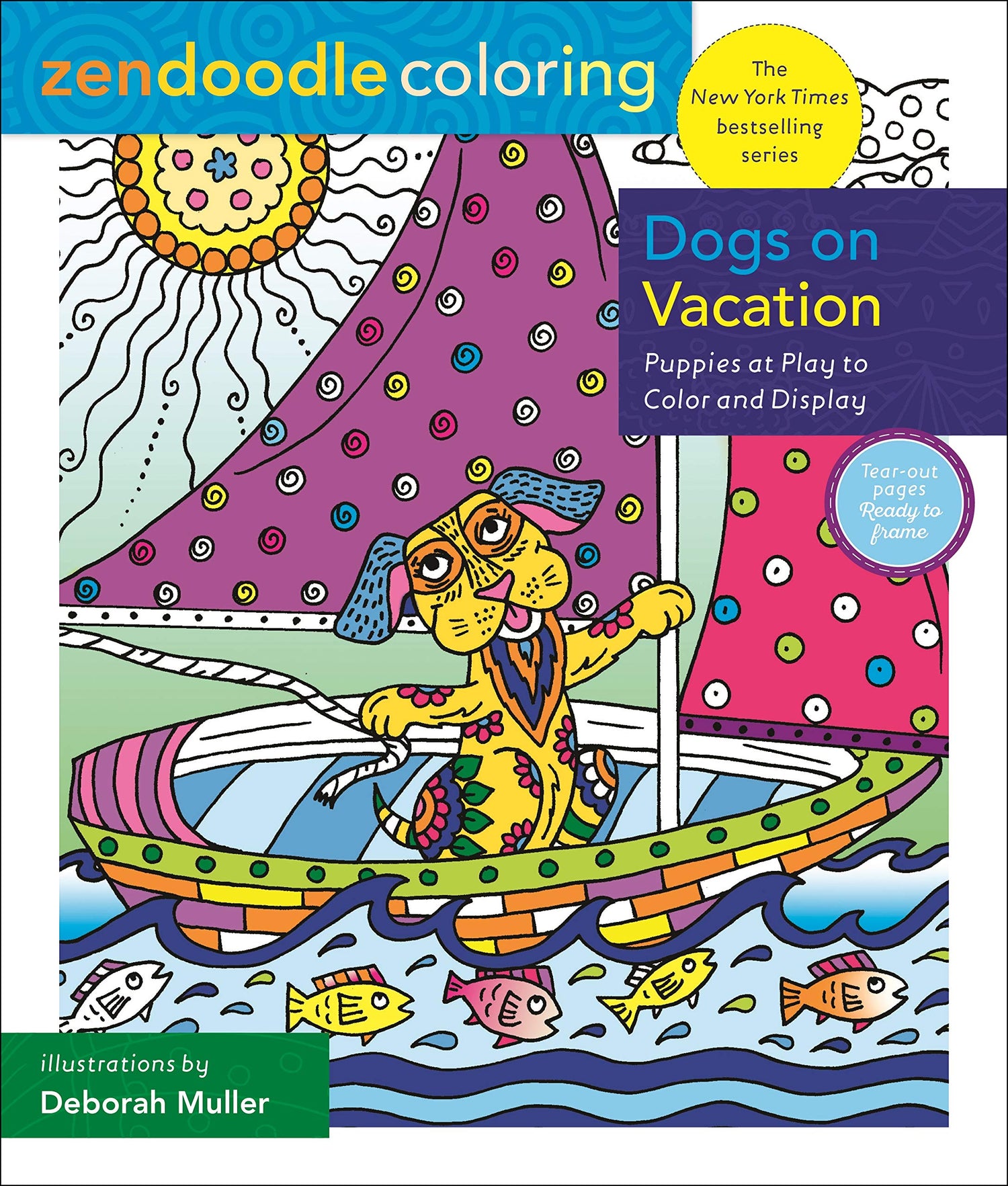 Whether it's playing Frisbee on the beach, swimming in a lake, or hiking up a mountain, dogs love vacations as much as their people do. This coloring book is a celebration of dogs on vacation: licking ice-cream cones at the harbor, jumping off a dock into a lake, keeping up with the kids as they bike into town. This collection of 62 hand-drawn illustrations from the New York Times best-selling Zendoodle series is the perfect companion for any summer vacation travel!