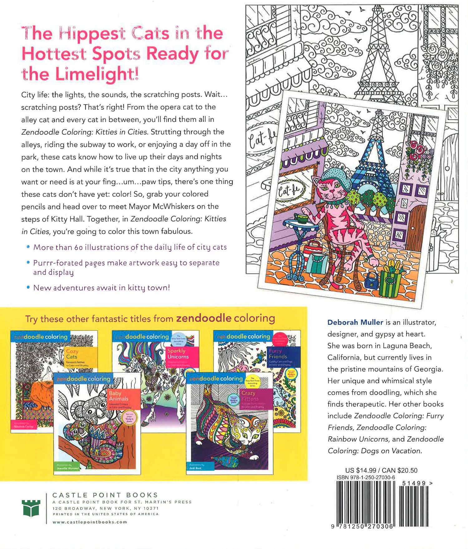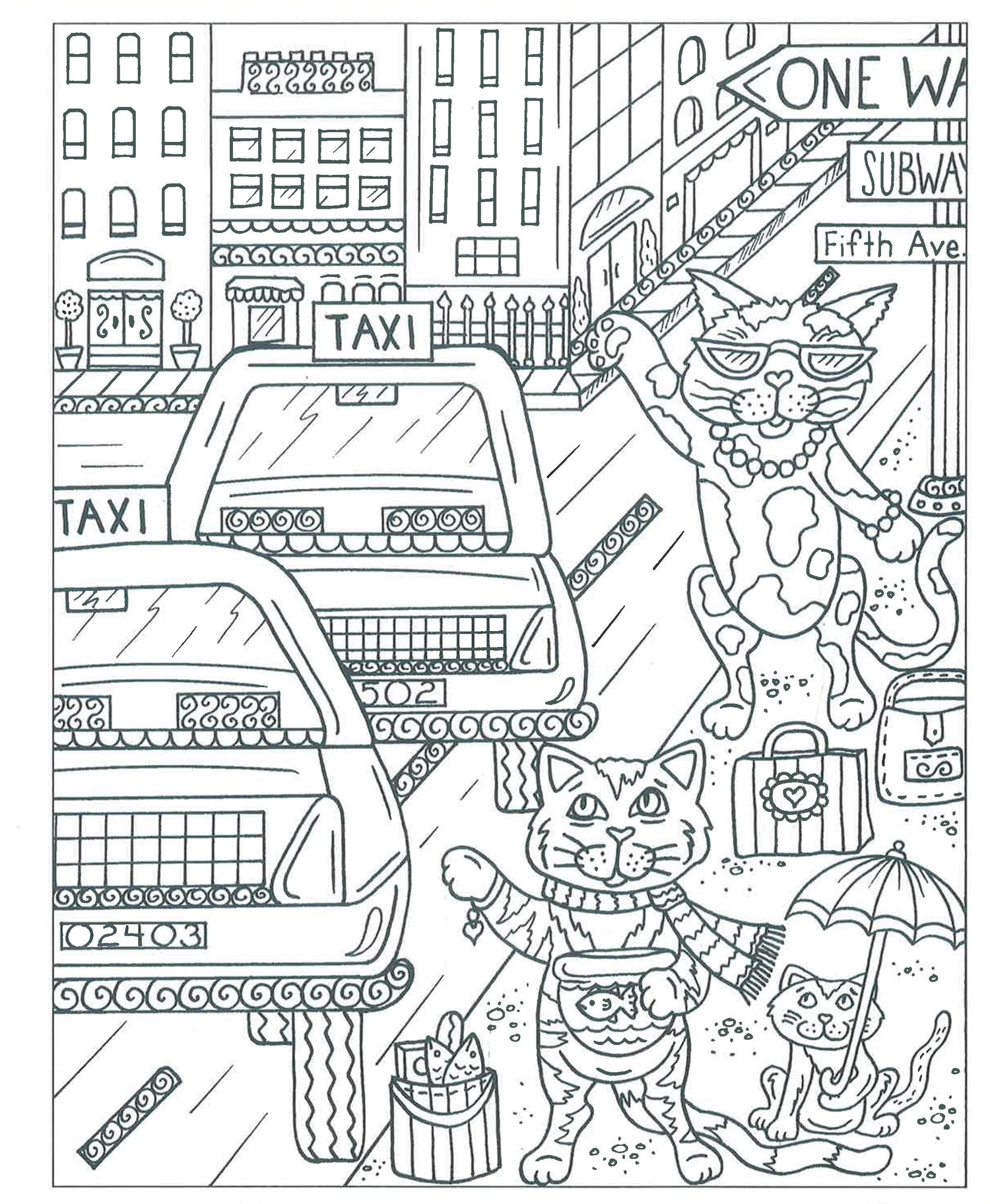 City life: the lights, the sounds, the scratching posts. Wait…scratching posts? That’s right! From the opera cat to the alley cat and every cat in between, you’ll find them all in Zendoodle Coloring: Kitties in Cities. Strutting through the alleys, riding the subway to work, or enjoying a day off in the park, these cats know how to live up their days and nights on the town. And while it’s true that in the city anything you want or need is at your fing…um…paw tips, there’s one thing these cats don’t have yet: color! So, grab your colored pencils and head over to meet Mayor McWhiskers on the steps of Kitty Hall. Together, in Zendoodle Coloring: Kitties in Cities, you’re going to color this town fabulous.