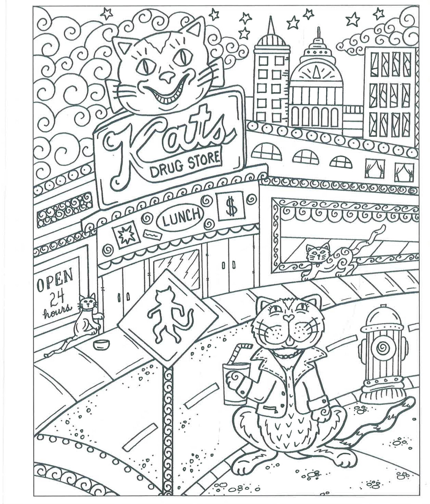 Zendoodle Coloring: Kitties In Cities