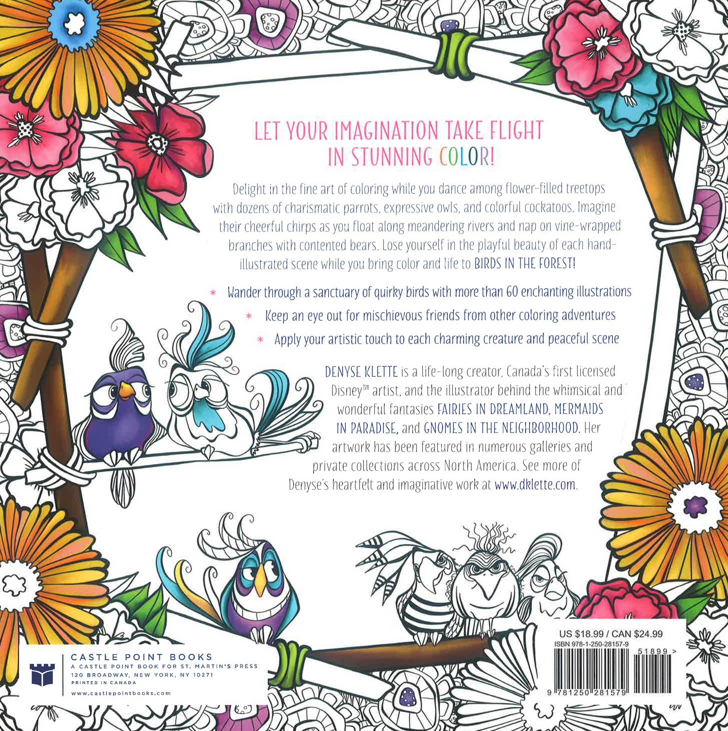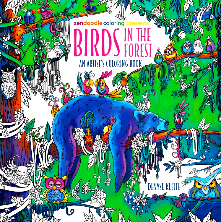 Popular artist Denyse Klette is back with another intricate, whimsical coloring book, Zendoodle Coloring Presents: Birds in the Forest.