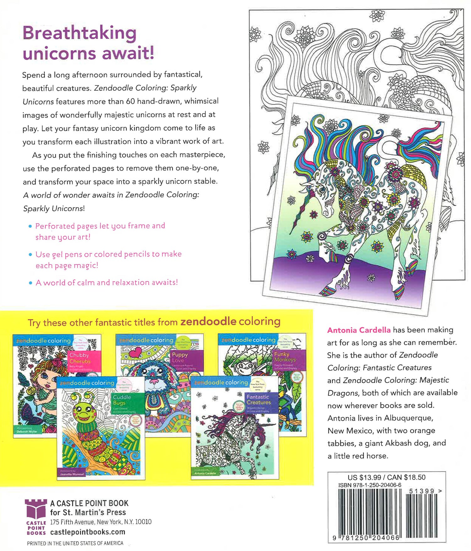 From the New York Times bestselling Zendoodle series, Antonia Cardella's Zendoodle Coloring: Sparkly Unicorns includes 62 hand-drawn illustrations of everyone's favorite fairy-tale fillies that will relax, inspire, and give rainbows of color to artists, unicorn-lovers, and loyal Zendoodle fans everywhere.