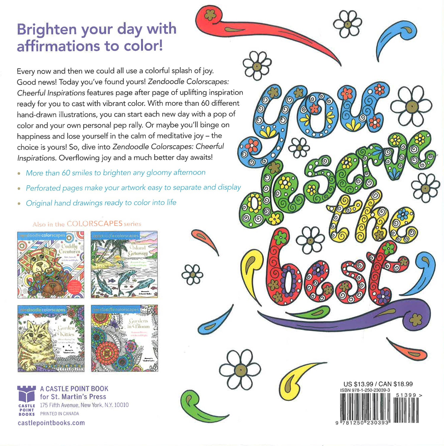 Zendoodle Colorscapes brings colorists everywhere cheerful designs in an attractive square format. Colorscapes: Cheerful Inspirations includes 62 hand-drawn illustrations featuring uplifting words and positive phrases. High-quality paper and perforated pages allow coloring enthusiasts to remove and display their joyful works of art!