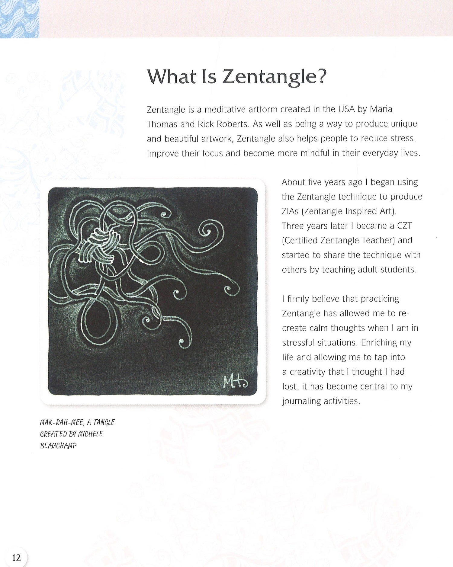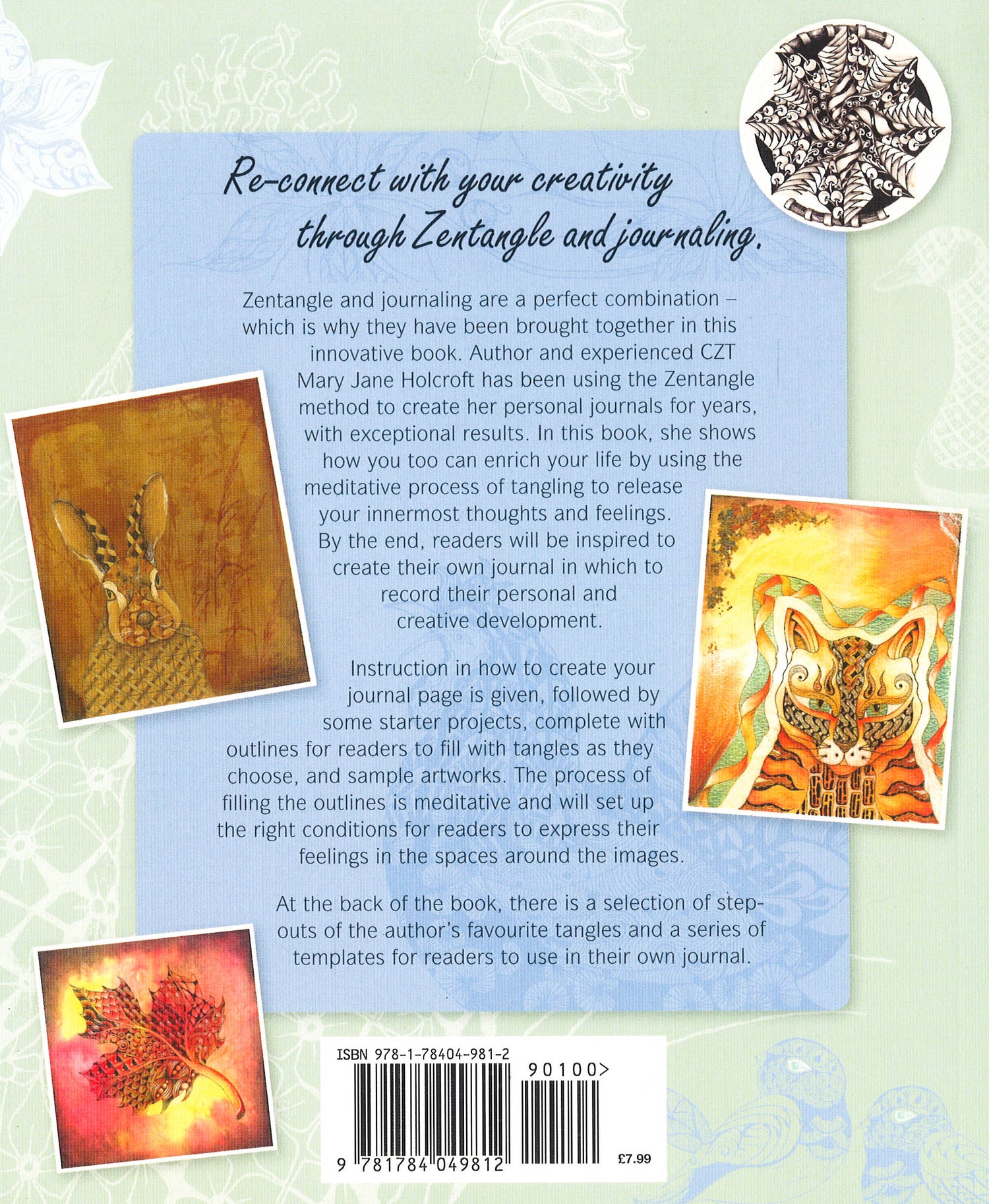 The purpose of this book is to bring the mediums of tangling and journaling together to help readers enrich their lives. On each spread there is an outline for readers to fill as they choose. Inspiration is provided by a corresponding finished artwork complete with a range of Zentangle patterns. The process of filling the outlines is meditative and will set up the right conditions for readers to express their feelings in the spaces around the images. Whether these thoughts are dreamy or stormy, releasing them will leave readers with a calm spirit, a clear mind and a beautiful journal page.Zentangle Journaling offers a gentle and forgiving way to overcome deep-seated barriers to creativity and develop a stronger, happier self.A wonderfully therapeutic way of releasing innermost thoughts and feelings. Re-connect with creativity through a perfect marriage between Zentangle and journaling. Every page is a thing of beauty, offering the perfect conditions for self-expression. At the end readers will have a personalized journal and record of their development.