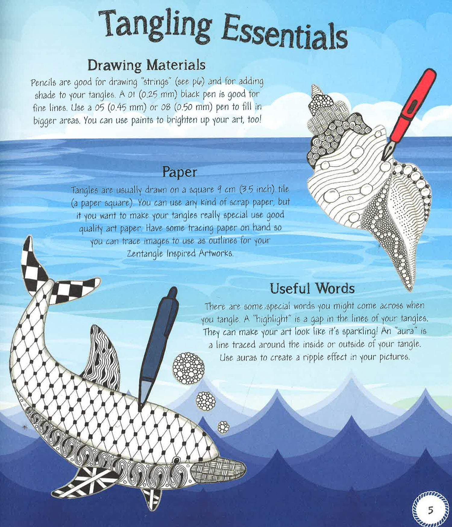 Sea creatures are some of the most bizarre and beautiful life-forms on our planet. Readers will learn to create Zentangle seals, jellyfish, dolphins and other marine creatures that look as intricately gorgeous as their living counterparts. This hands-on guide introduces readers to basic Zentangle patterns they can mix and match in original designs. Simple step-by-step instructions show readers a basic outline for each creature, how to divide into smaller shapes, and suggested patterns. A therapeutic art form, Zentangle will give readers a sense of peace as they doodle original works. They ll be amazed at how combining patterns can lead to complex, sea-inspired designs.